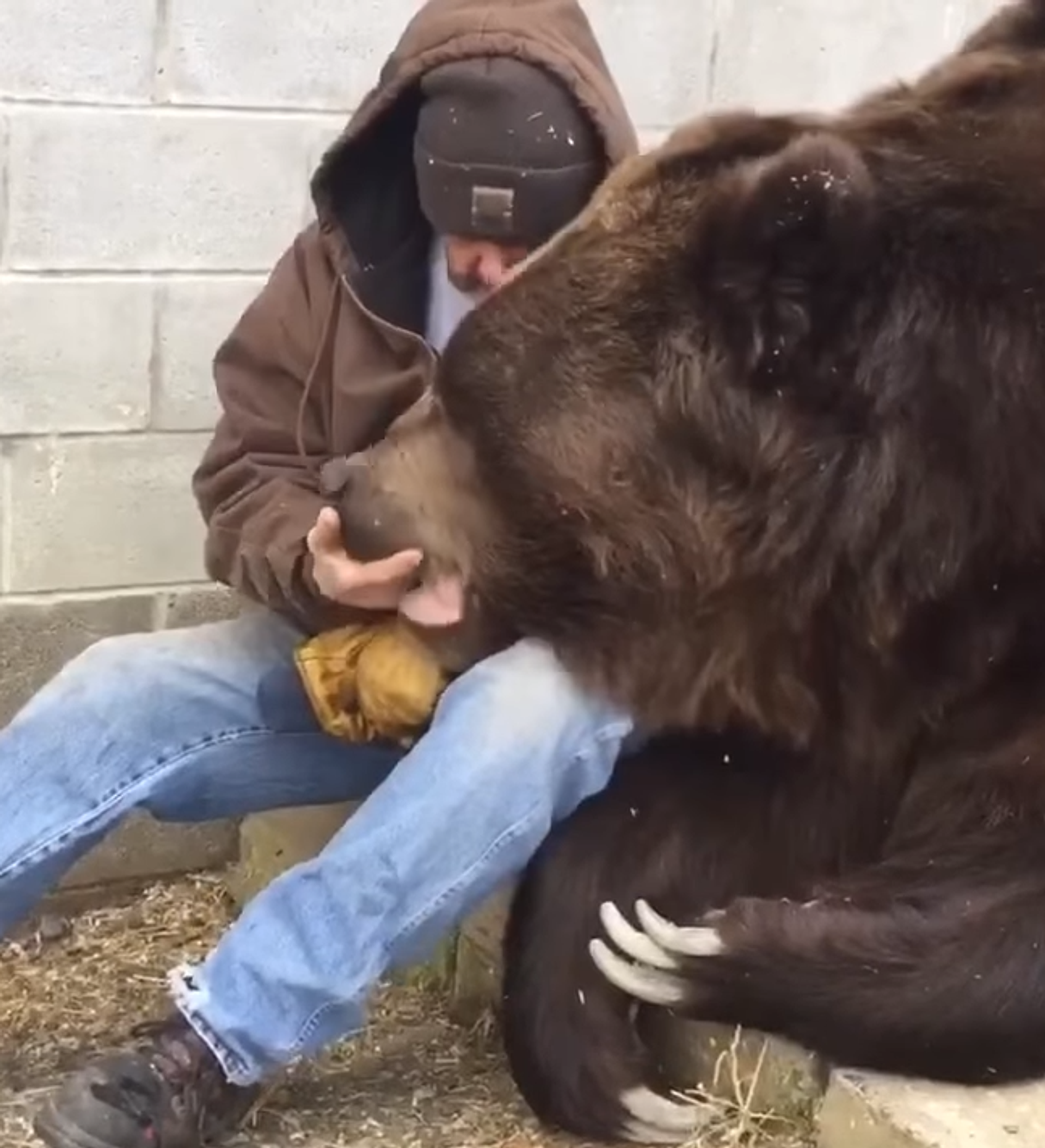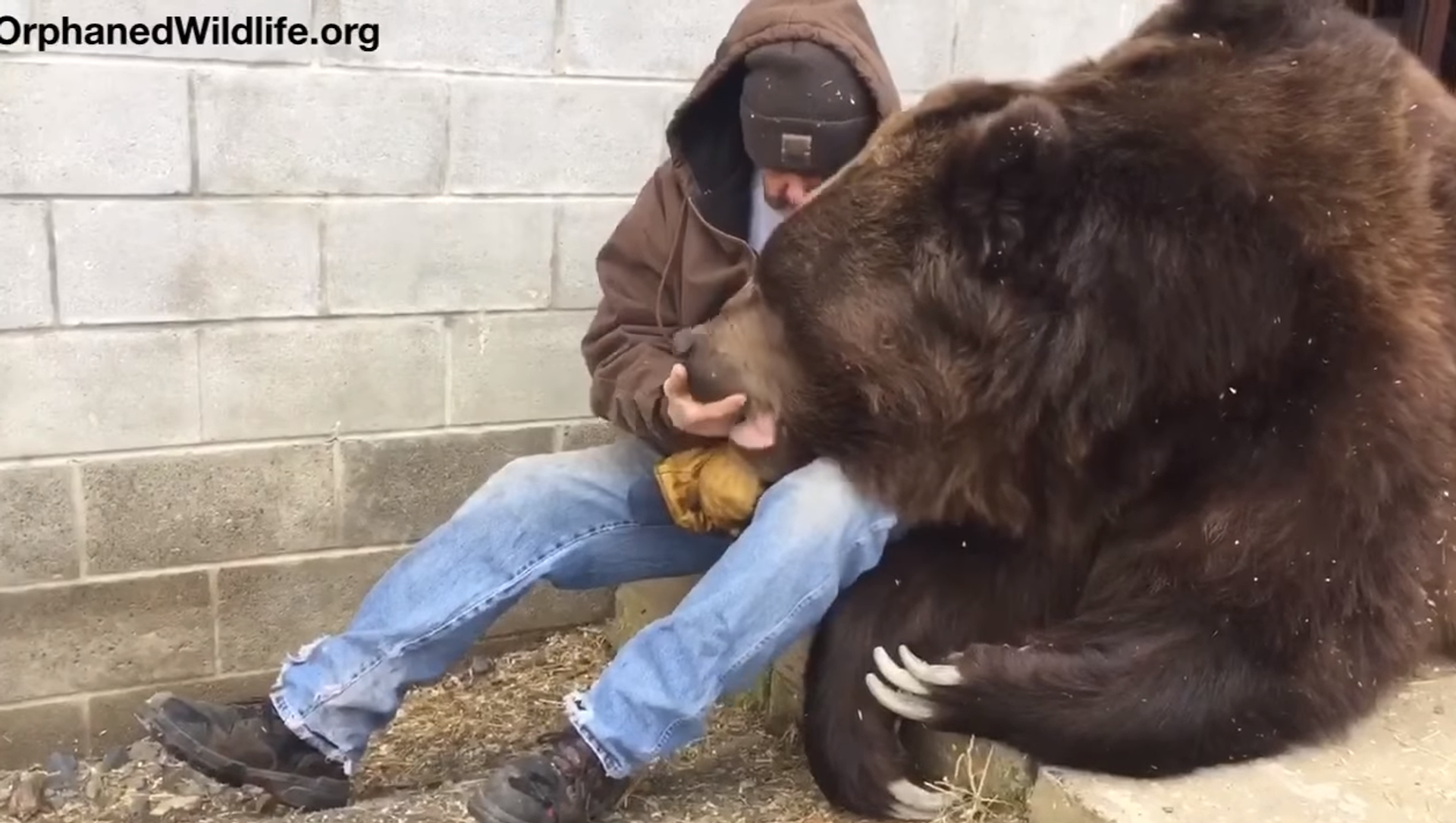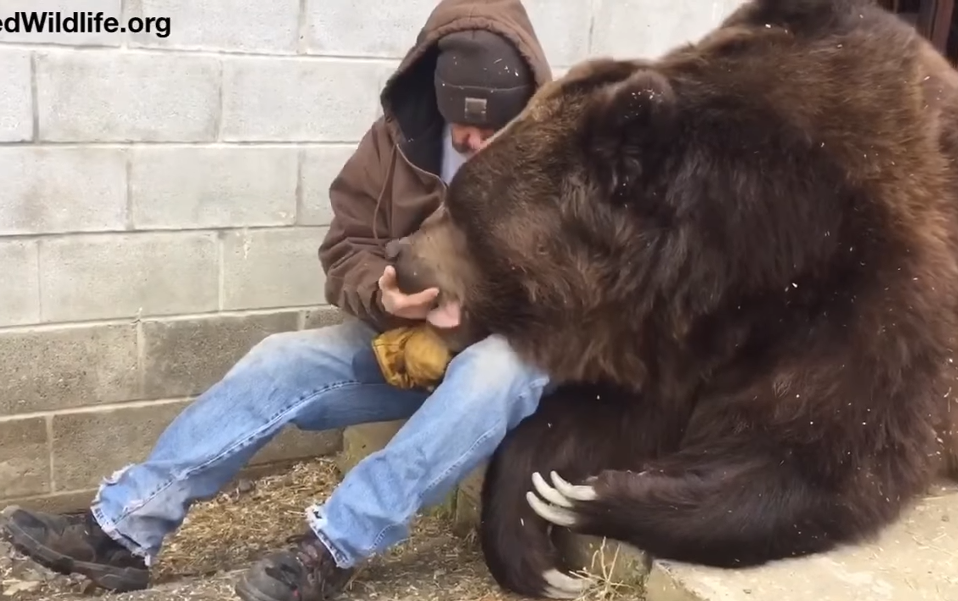 ويبين الفيديو، الذي نشرته قناة "نيويورك سنتر" التي تعمل على مساعدة الحيوانات اليتيمة، رجل أمريكي، جيم كوفالتشيك، وهو يقوم بعناق الدب الضخم، الذي يزن 680 كغ.