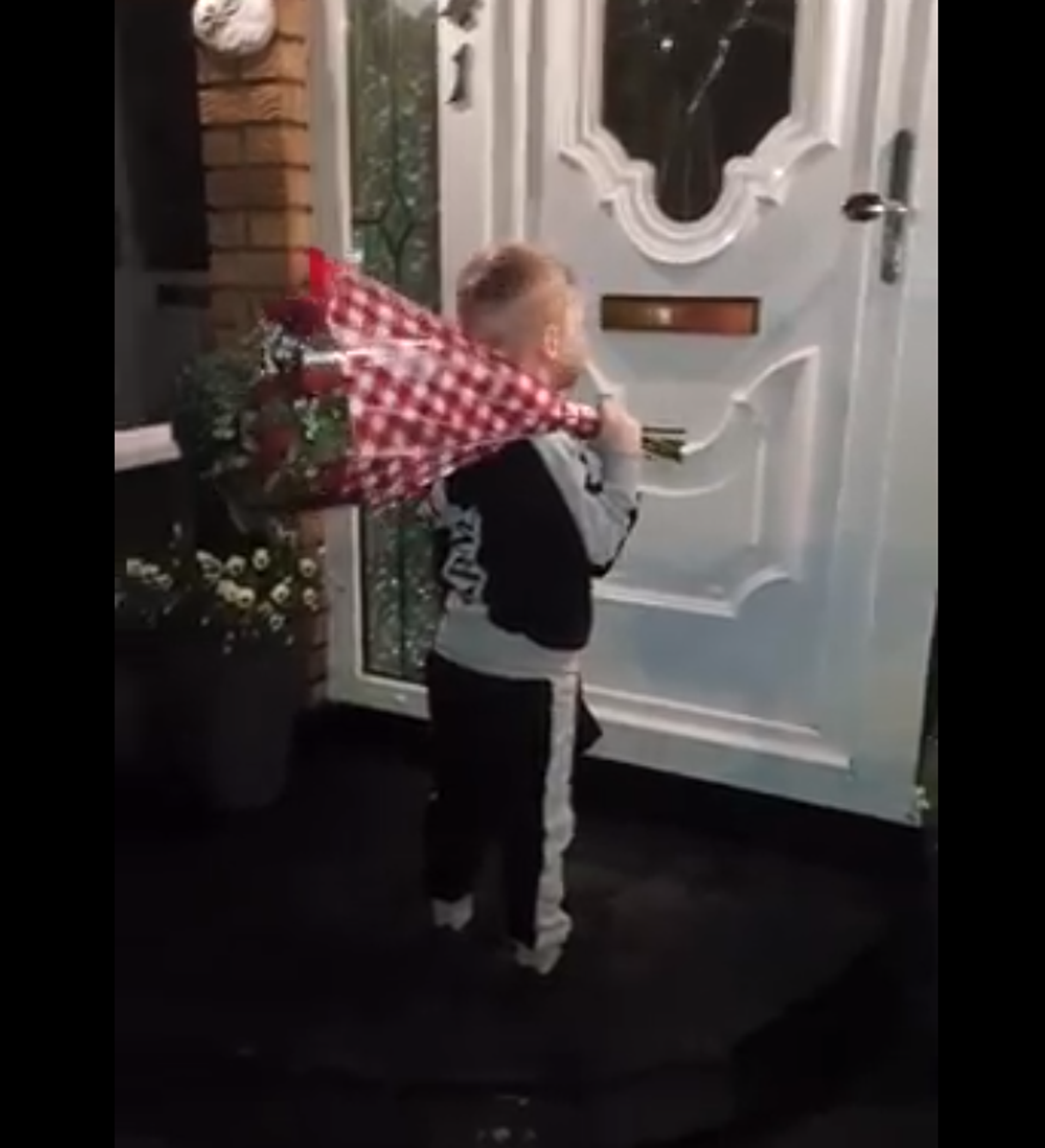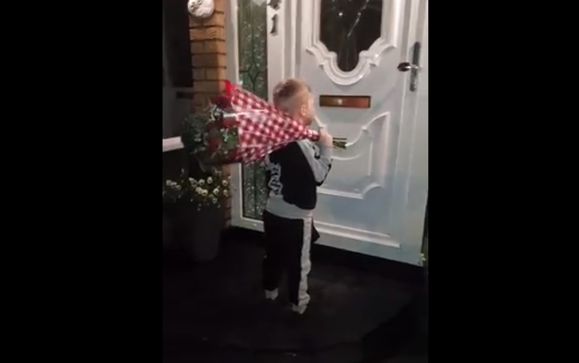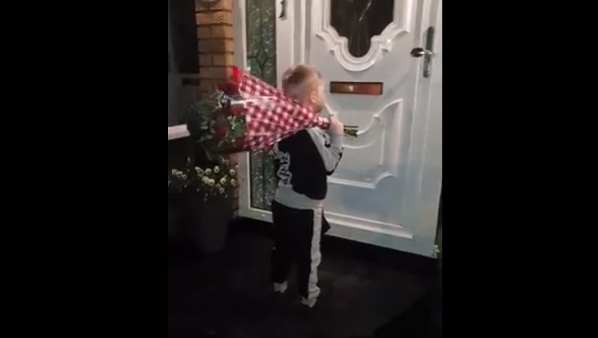 يظهر مقطع الفيديو توجه الطفل إلى منزل حبيبته حاملا باقة ورد وظرفا لونه أحمر، بينما تصوره والدته وسط استقبال حافل من أسرة الفتاة، التي أسرعت لاحتضان حبيبها تقديرا لهديته.