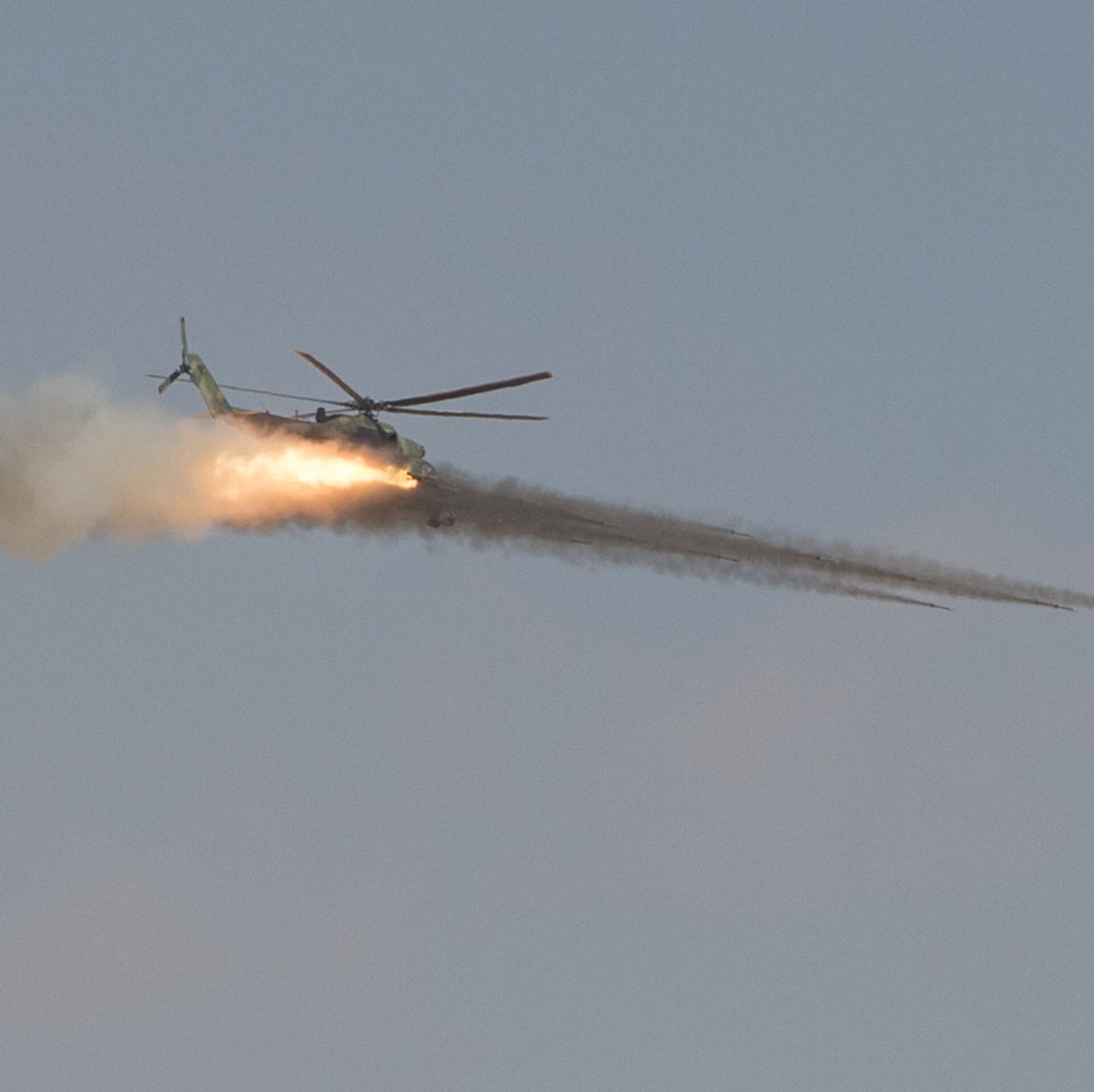 وتقصف مروحيات "مي-25" السورية مواقع الإرهابيين بقنابل تم استيرادها من الاتحاد السوفيتي وقنابل محلية الصنع.