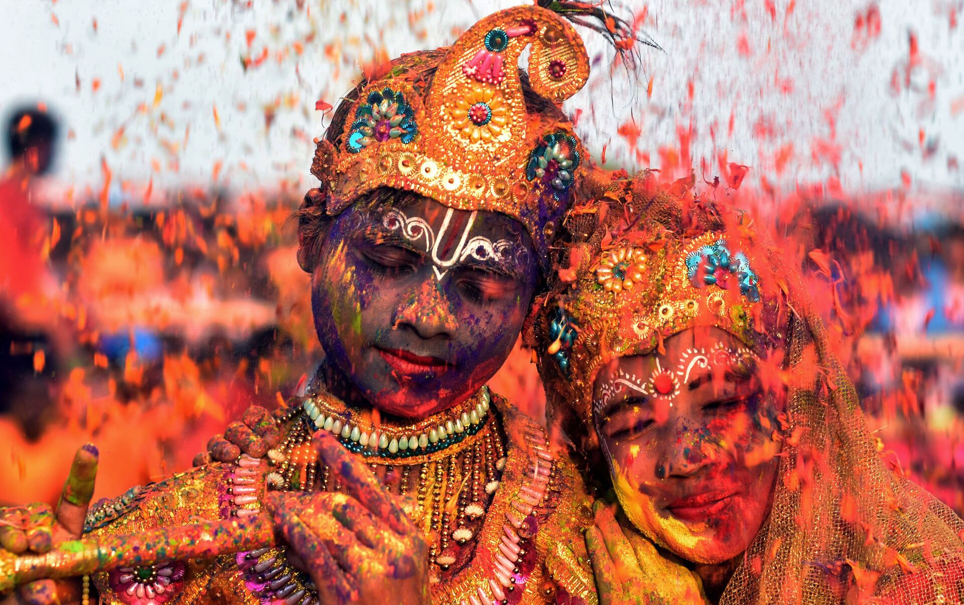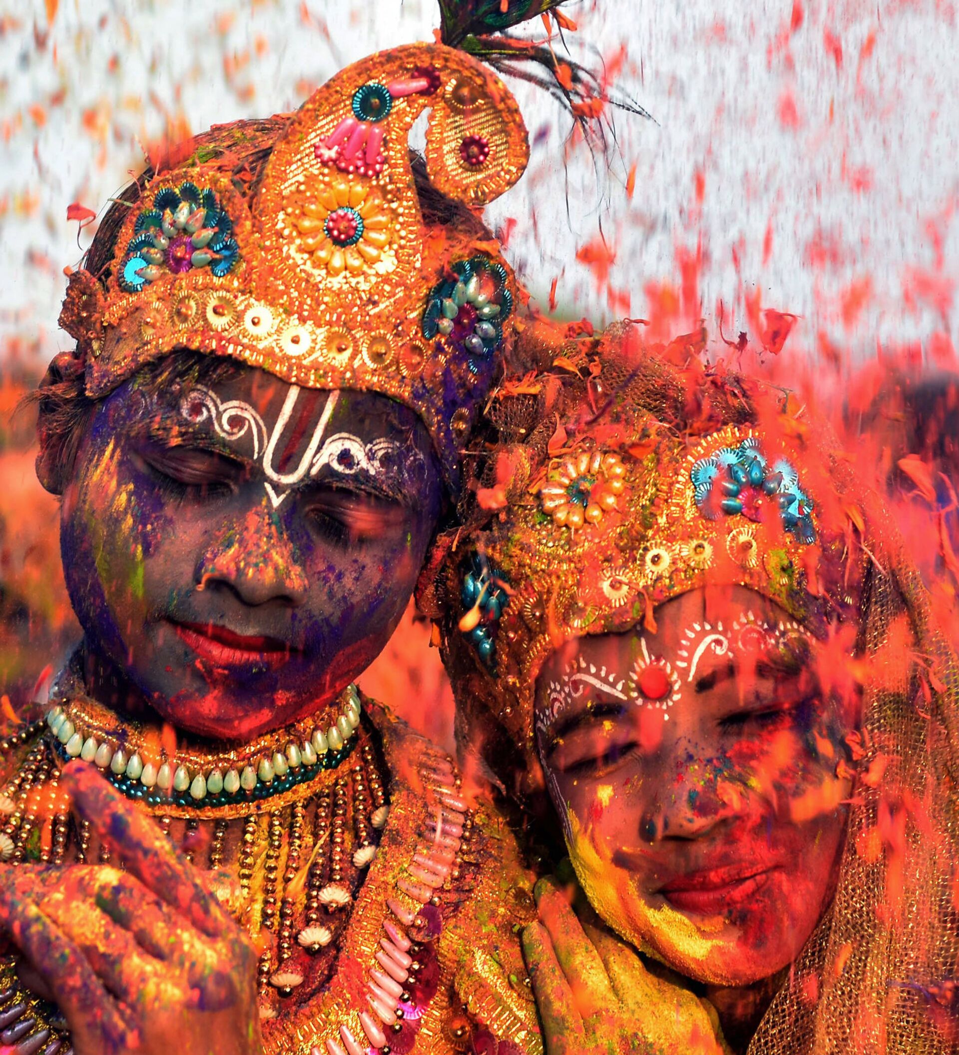 © AFP 2023 / Asit Kumar المشاركون في مهرجان الألوان "هولي" في الهند، 1 مارس/ آذار 2018