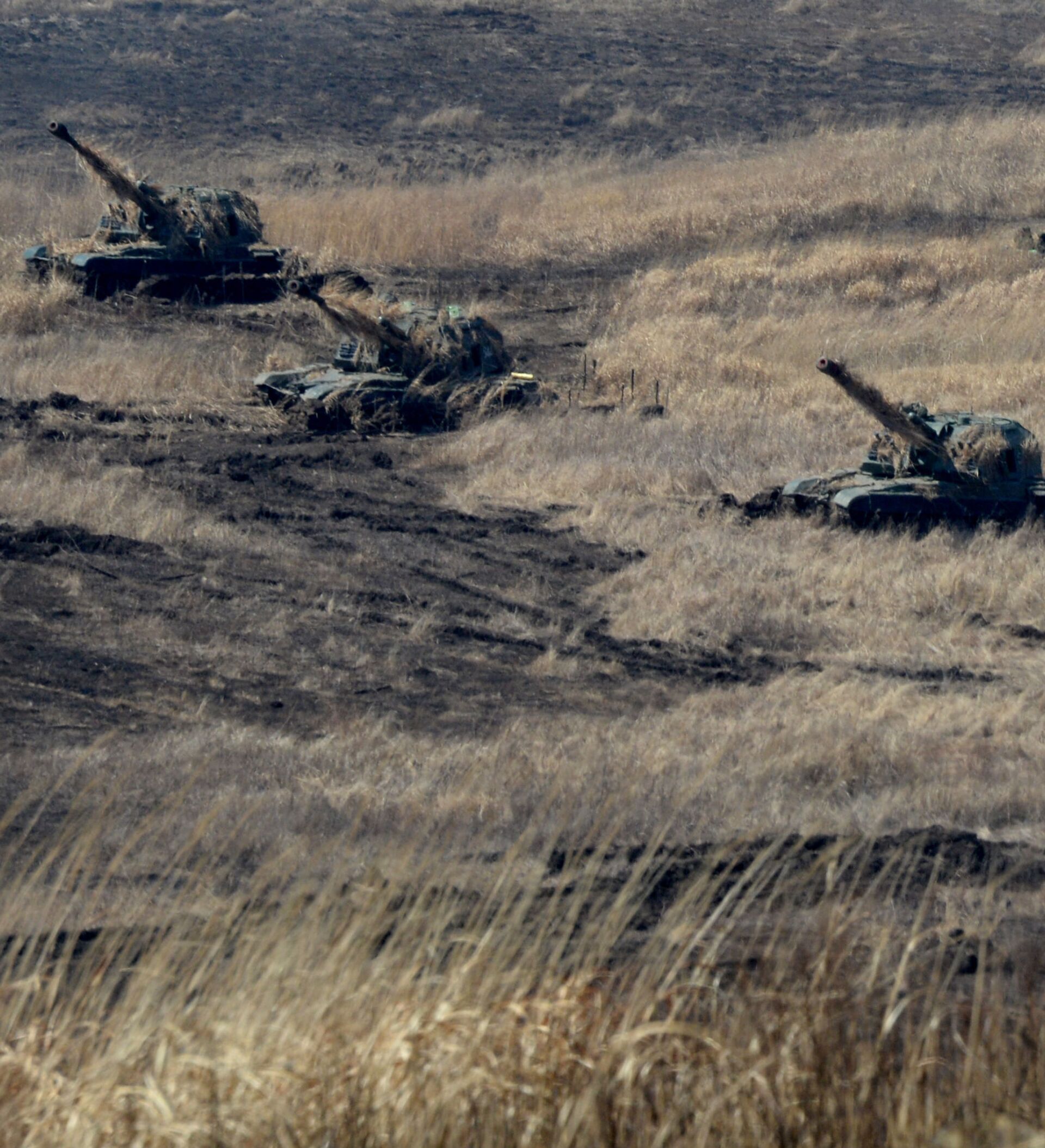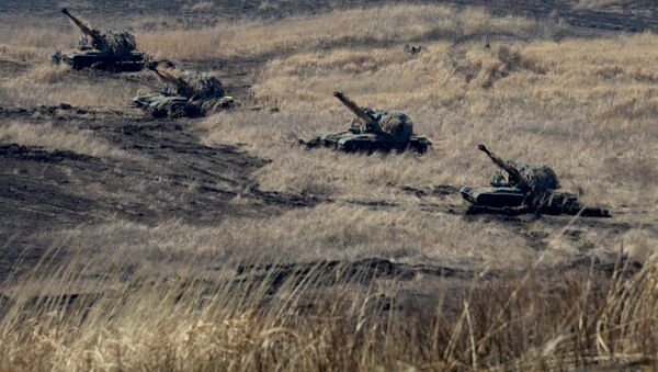 © Sputnik . Vitaliy Ankovبطاريات مدافع الهاوتزر ذاتية الدفع "مستا إس" "MSTA-S" في حالة الهجوم "إطلاق النار" أثناء تدريبات أسطول المحيط الهادئ في إقليم بريمورسكي.