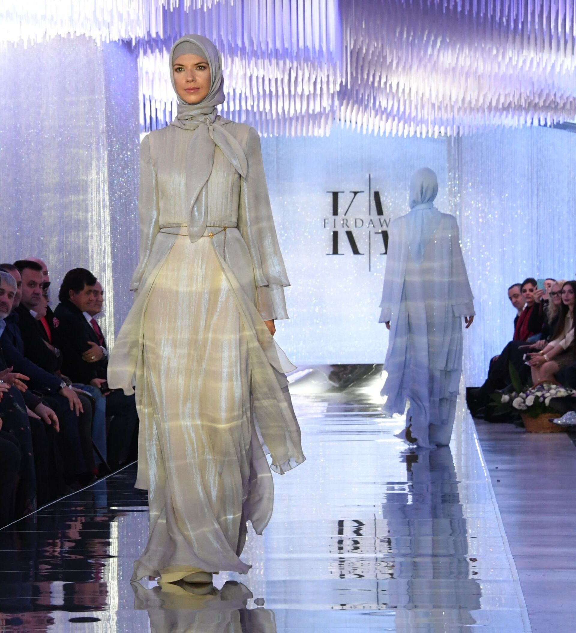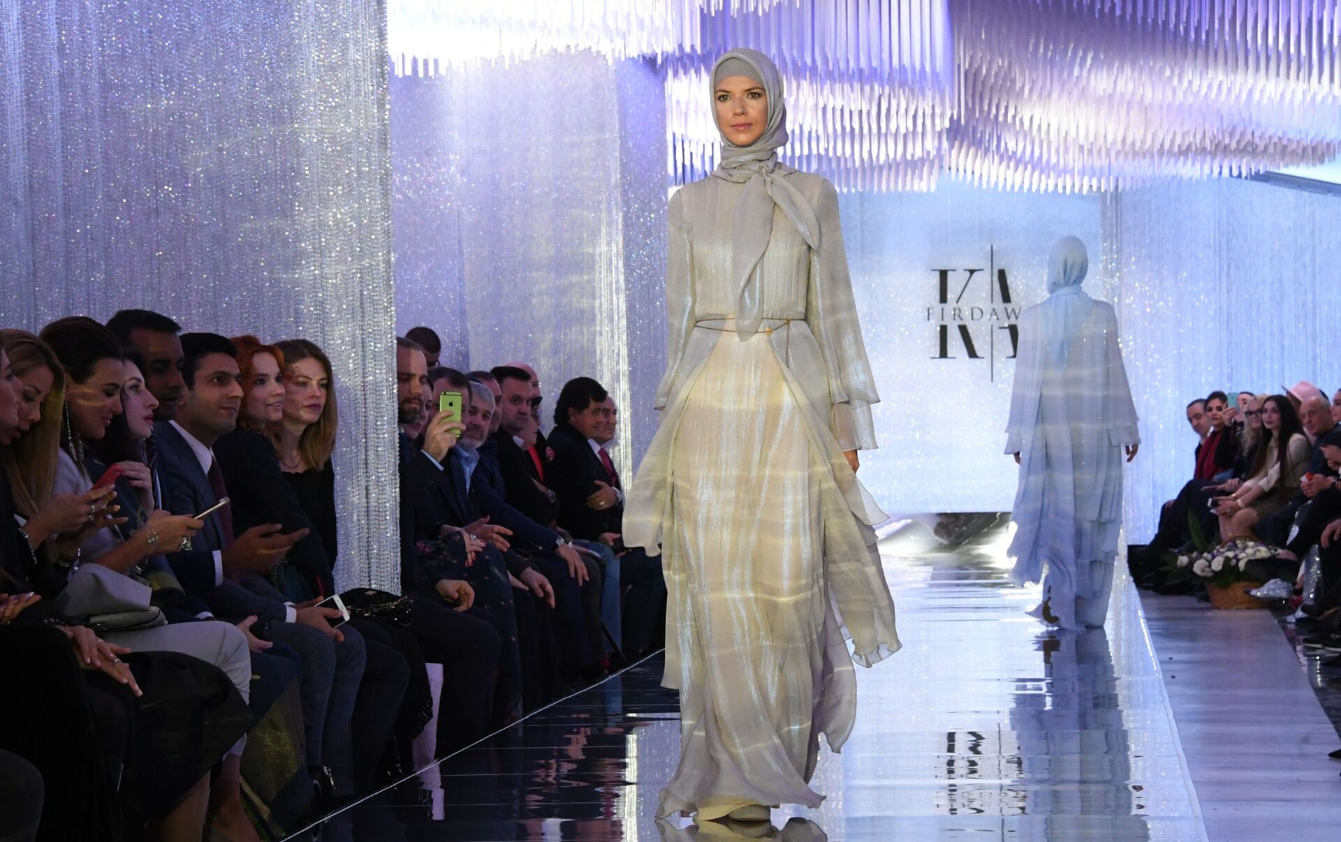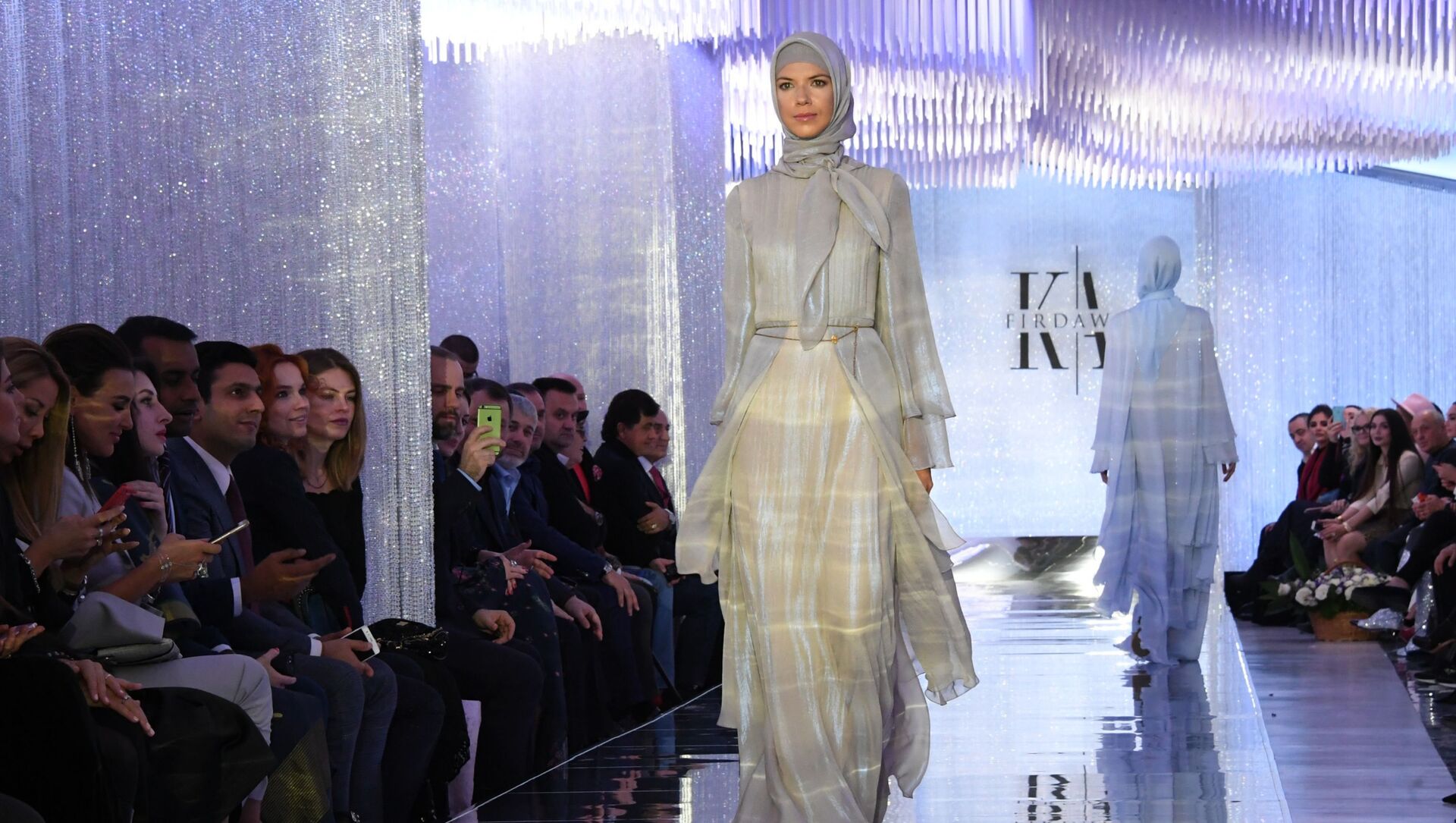 عرض أزياء لدار الأزياء فردوس - قامت المصممة عائشة قاديروف، ابنة رئيس الجمهورية الشيشانية رمضان قاديروف، في  إطار أسبوع الموضة مرسيدس بينز في بارك زارياديي بموسكو - سبوتنيك عربي