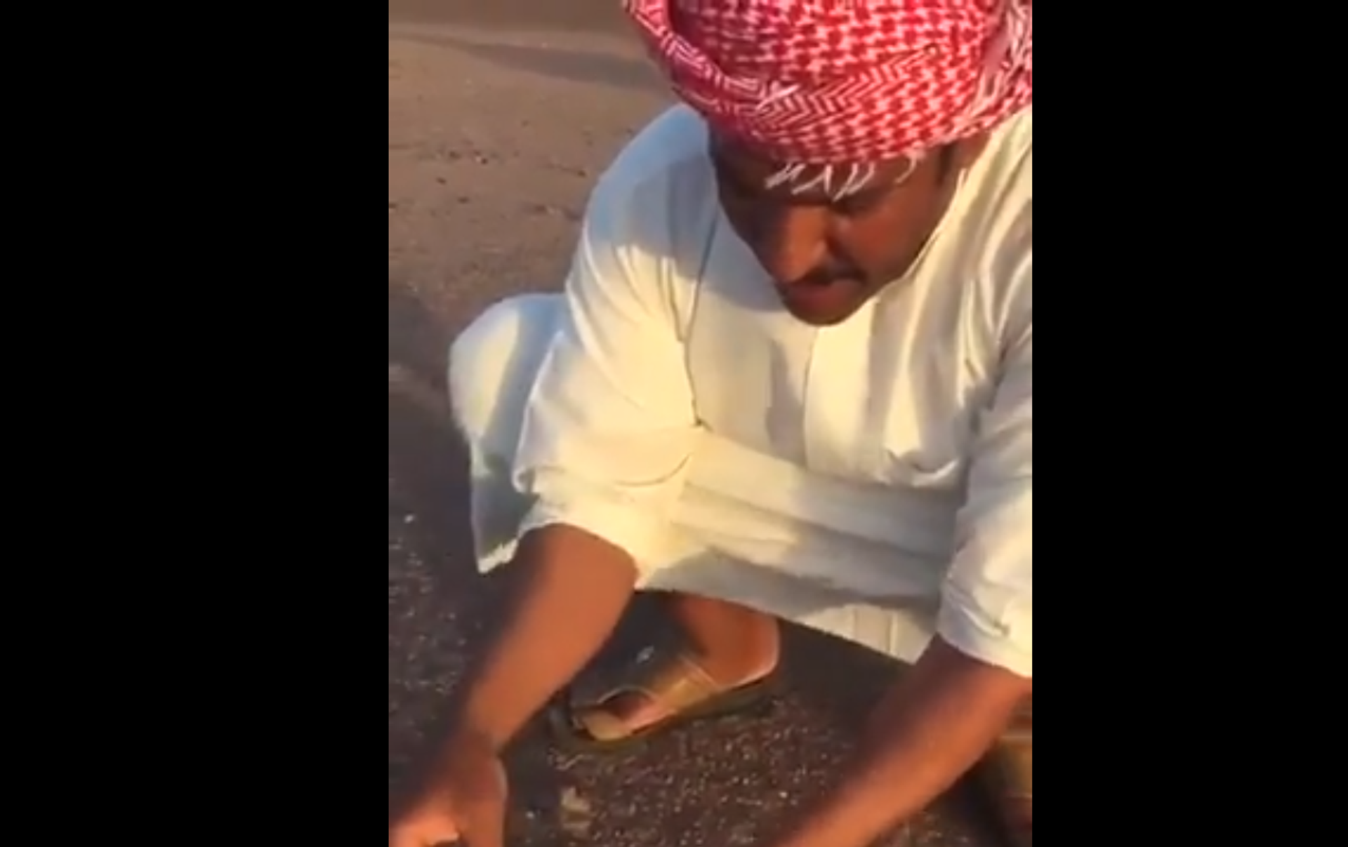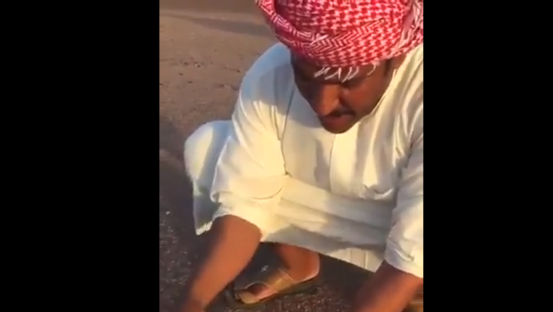 انتشر فيديو على وسائل التواصل الاجتماعي يظهر اصطياد مواطن سعودي لحيوان "الضب" تمهيدا لتناوله.