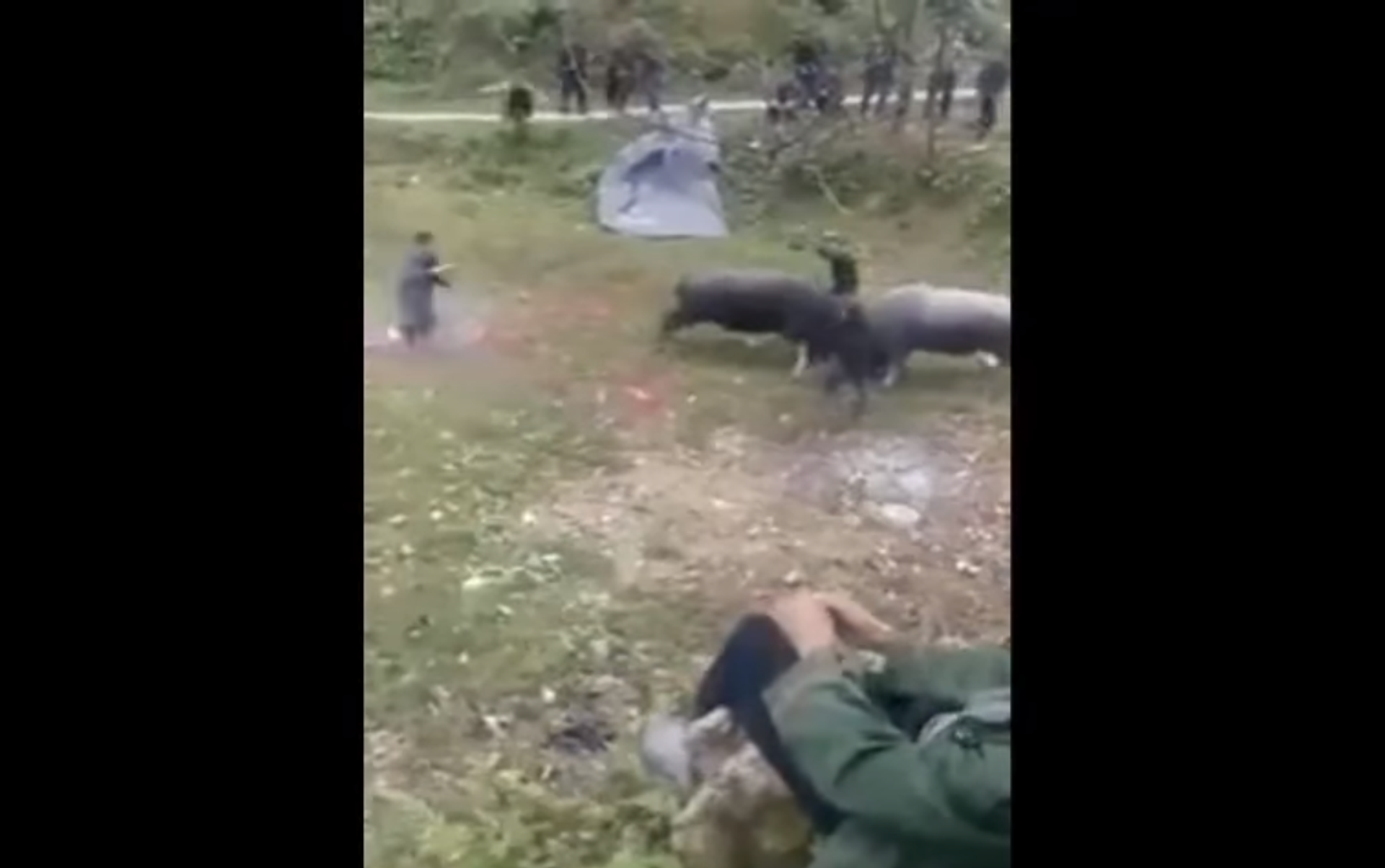 تداول رواد وسائل التواصل الاجتماعي فيديو يرصد مبارة للمصارعة بين ثورين، في الوقت الذي تواجد شخص بينهما وعلق بين قرونهما.