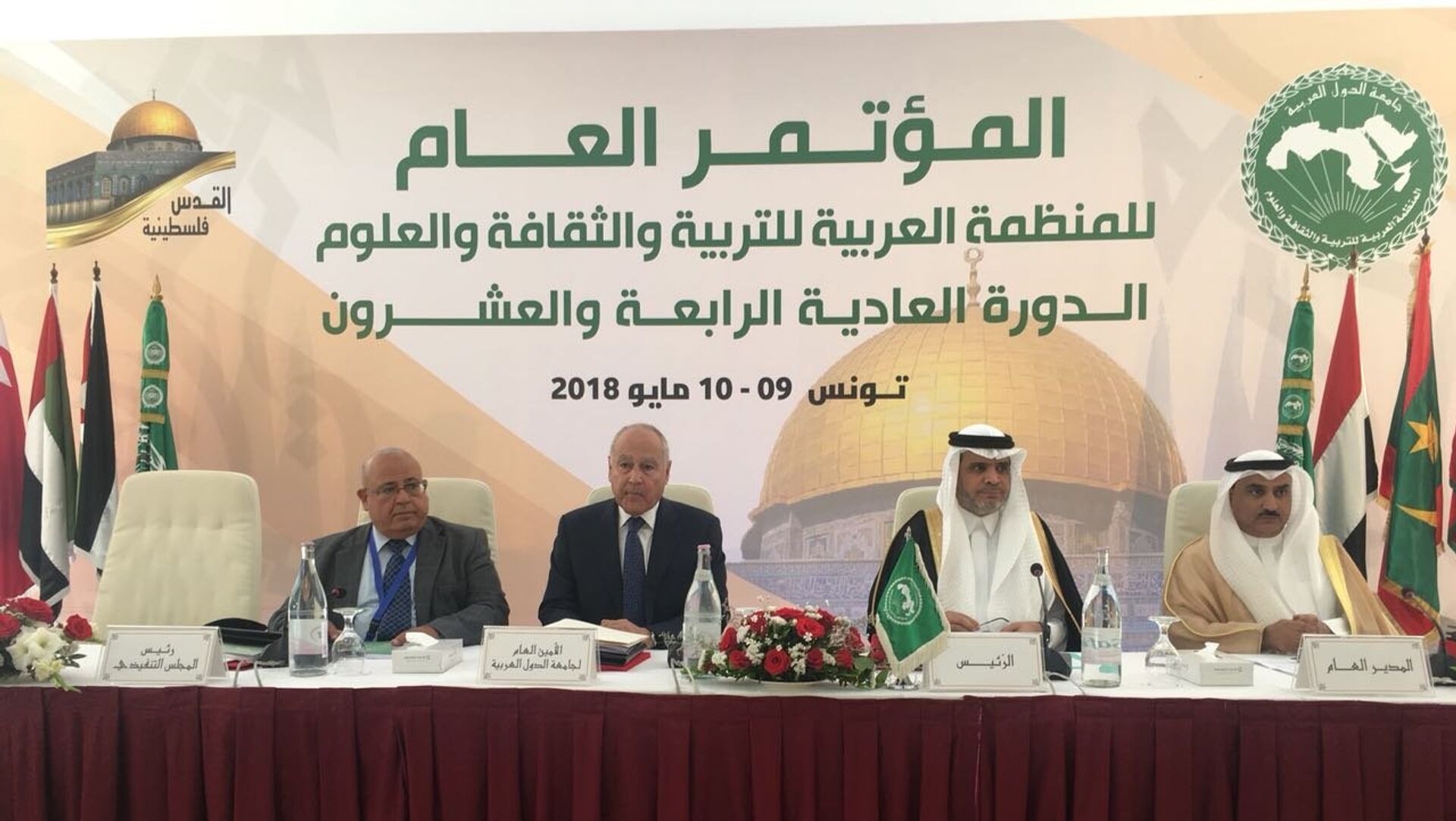 جاء ذلك خلال مشاركته في الجلسة الافتتاحية للدورة الرابعة والعشرين للمؤتمر العام للمنظمة العربية للتربية والثقافة والعلوم "الألكسو"، الذي يعقد في تونس اليوم الأربعاء 9 مايو / آيار.