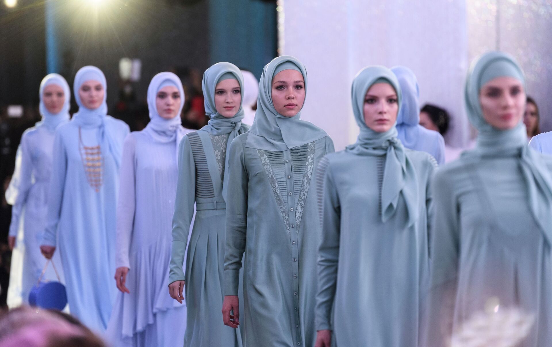 © Sputnik . Evgenya Novozhenina / الانتقال إلى بنك الصورعرض أزياء لدار الأزياء "فردوس" - قامت المصممة عائشة قاديروف، ابنة رئيس الجمهورية الشيشانية رمضان قاديروف، في إطار أسبوع الموضة "مرسيدس بينز" في "بارك زارياديي" بموسكو