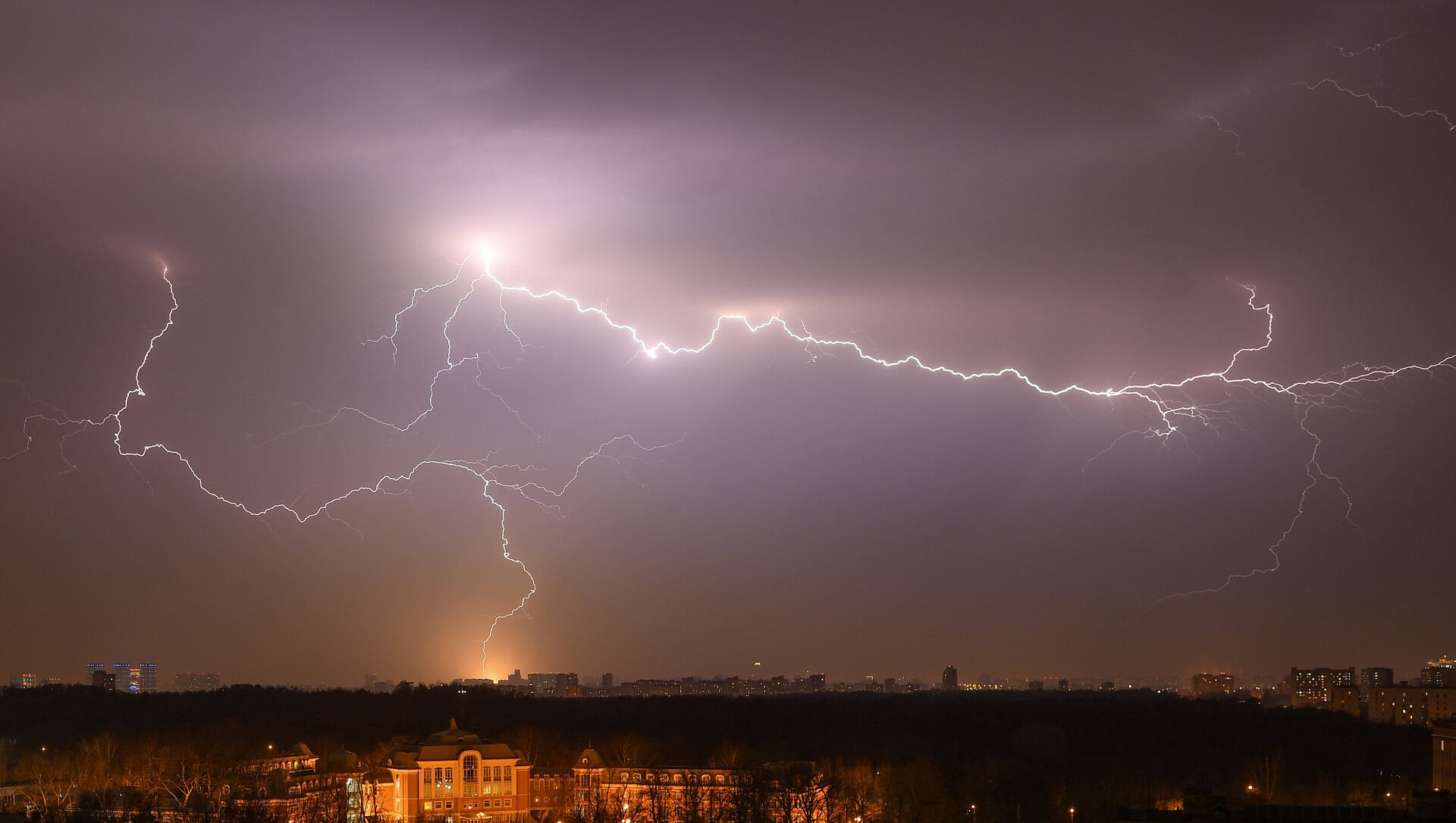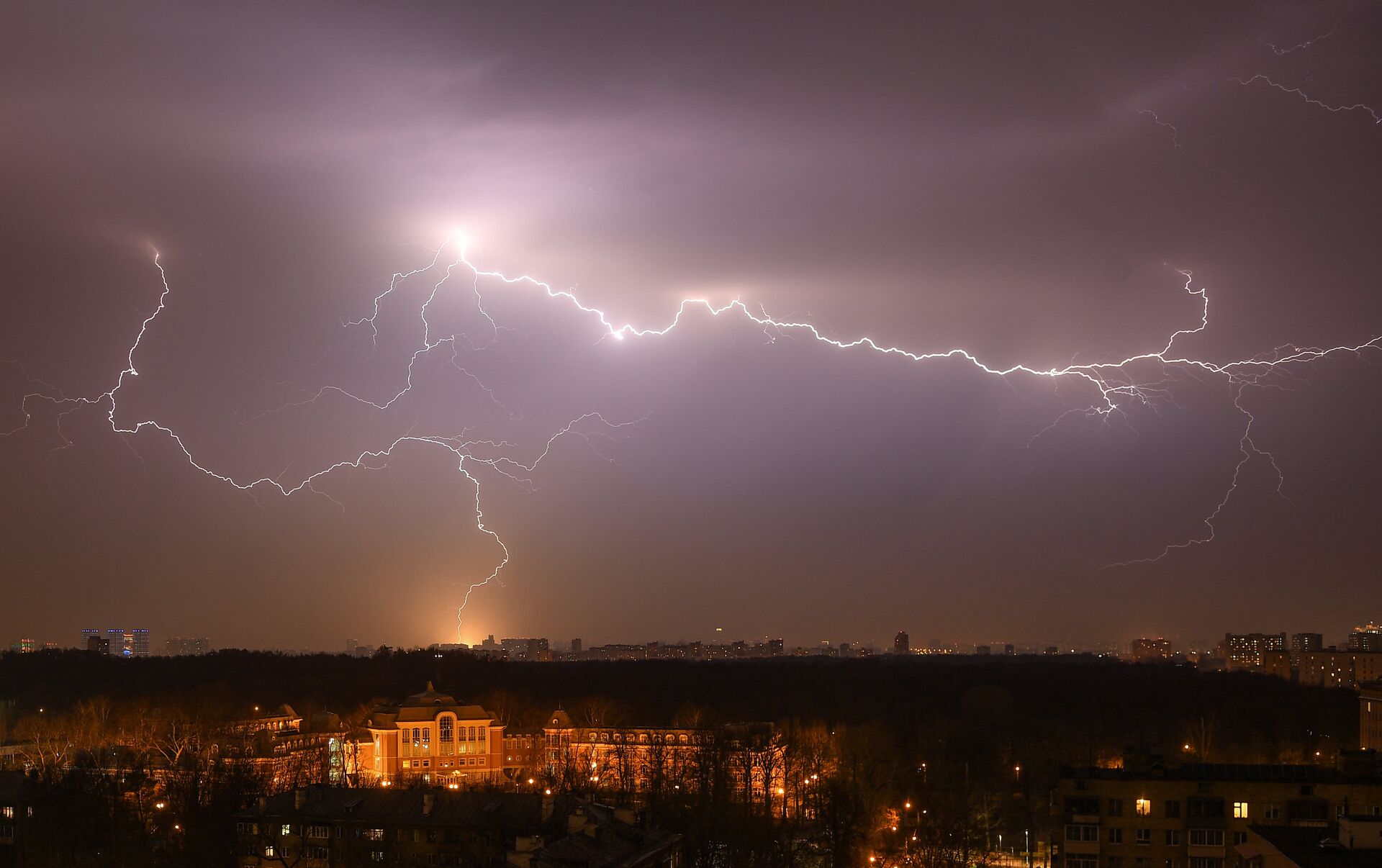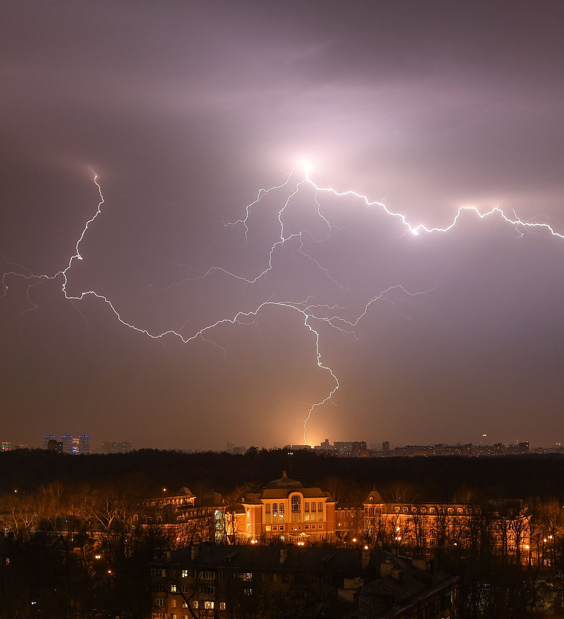 وخلال العاصفة ضرب البرق ناطحة السحاب "لاختا سنتنر" في المدينة الروسية.