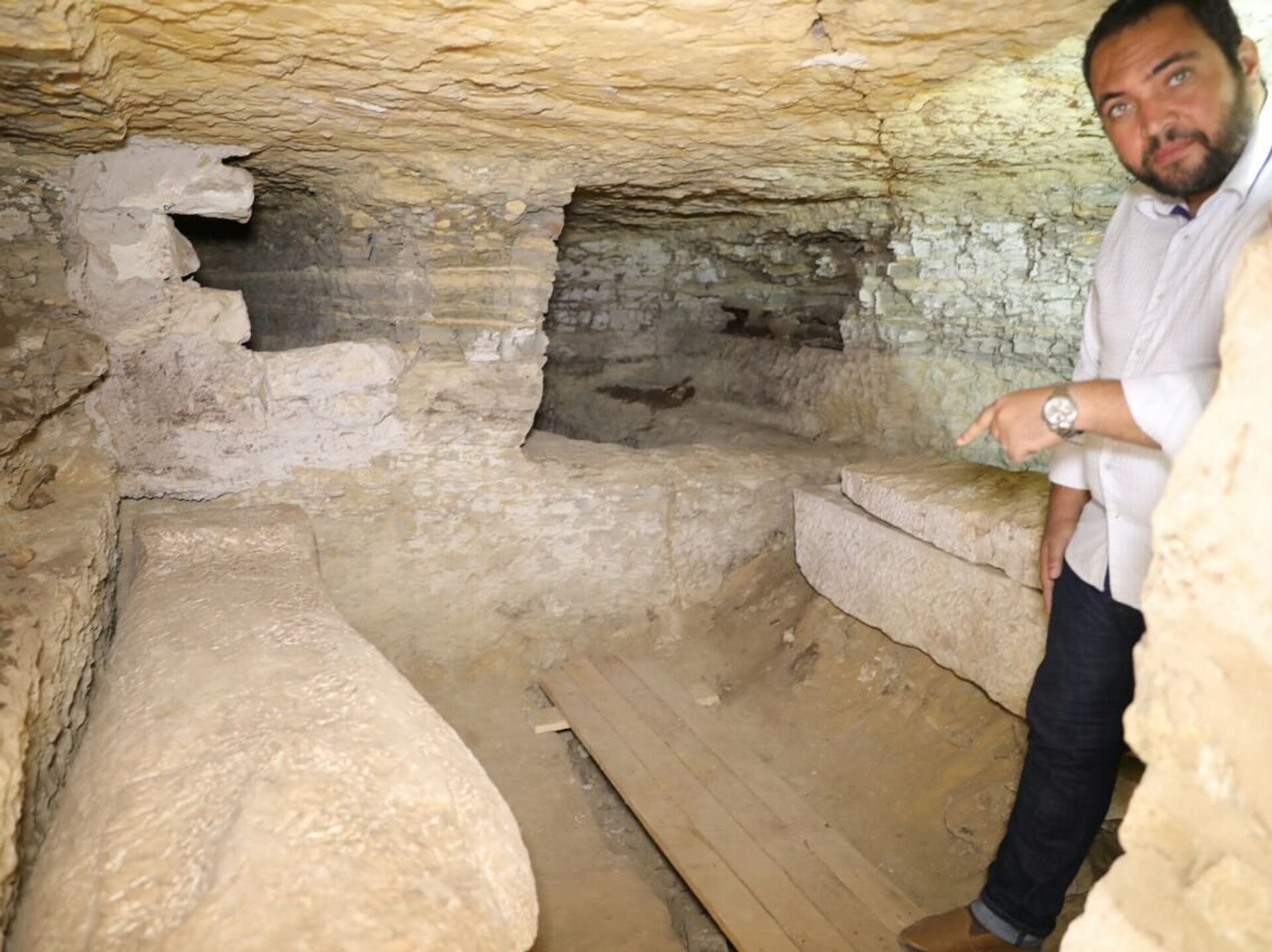 ومن جانبه، قال عادل عكاشة، رئيس الإدارة المركزية للقاهرة والجيزة، إنه أثناء أعمال الحفائر عثرت البعثة داخل البئر الرئيسي للمقبرة على تمثال من الجرانيت الوردي مكسور إلى جزئين، ويمثل التمثال صاحب المقبرة جالسا على مقعد صغير بدون مسند يرتدى النقبة القصيرة وباروكة الشعر المحبب.