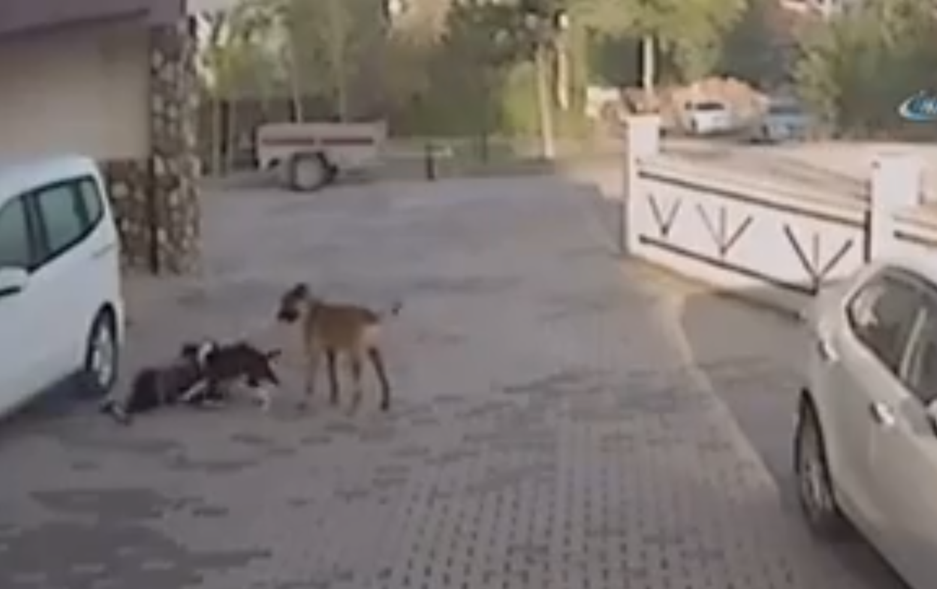 ووثقت كاميرات المراقبة الخارجية الحادثة، انقضاض كلب شرس على فتاة صغيرة وأمها أثناء انتظارهما باص المدرسة، وذلك في 23 أكتوبر/تشرين الأول في المنطقة الوسطى من مدينة كيرشيهير التركية.