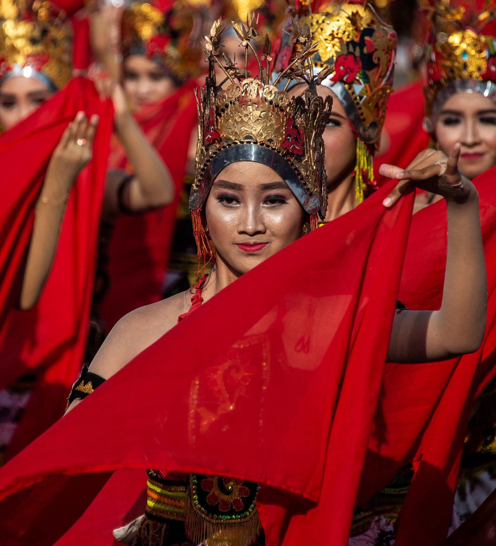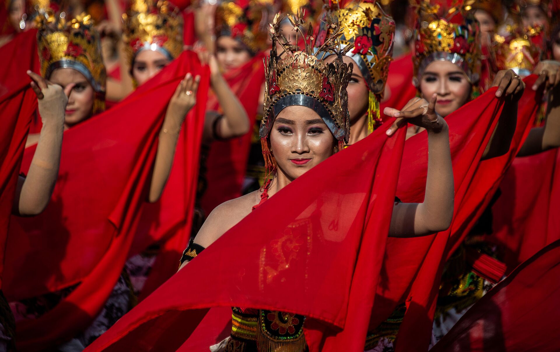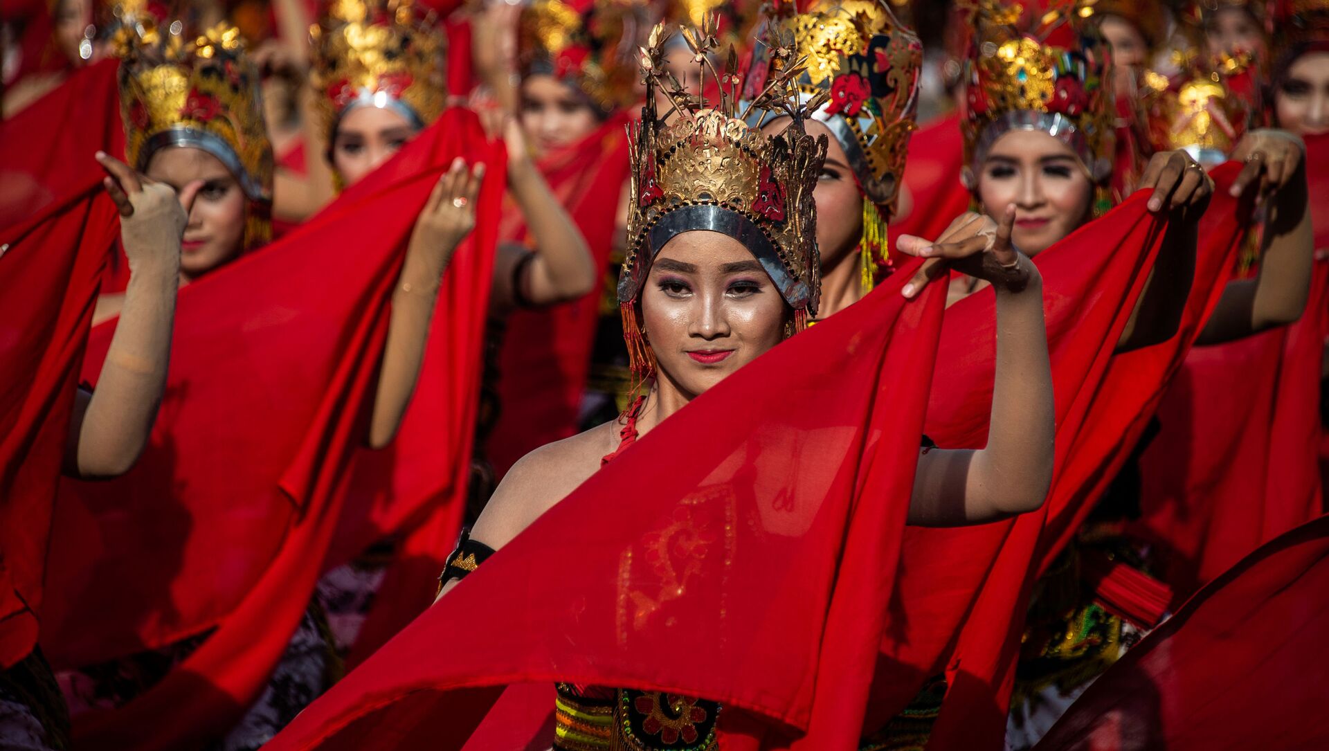 © AFP 2023 / Juni Kriswantoفتيات يؤدين الرقصة التقليدية على شاطئ مدينة بانيوانجي، إندونيسيا 20 أكتوبر/ تشرين الأول 2018