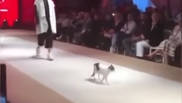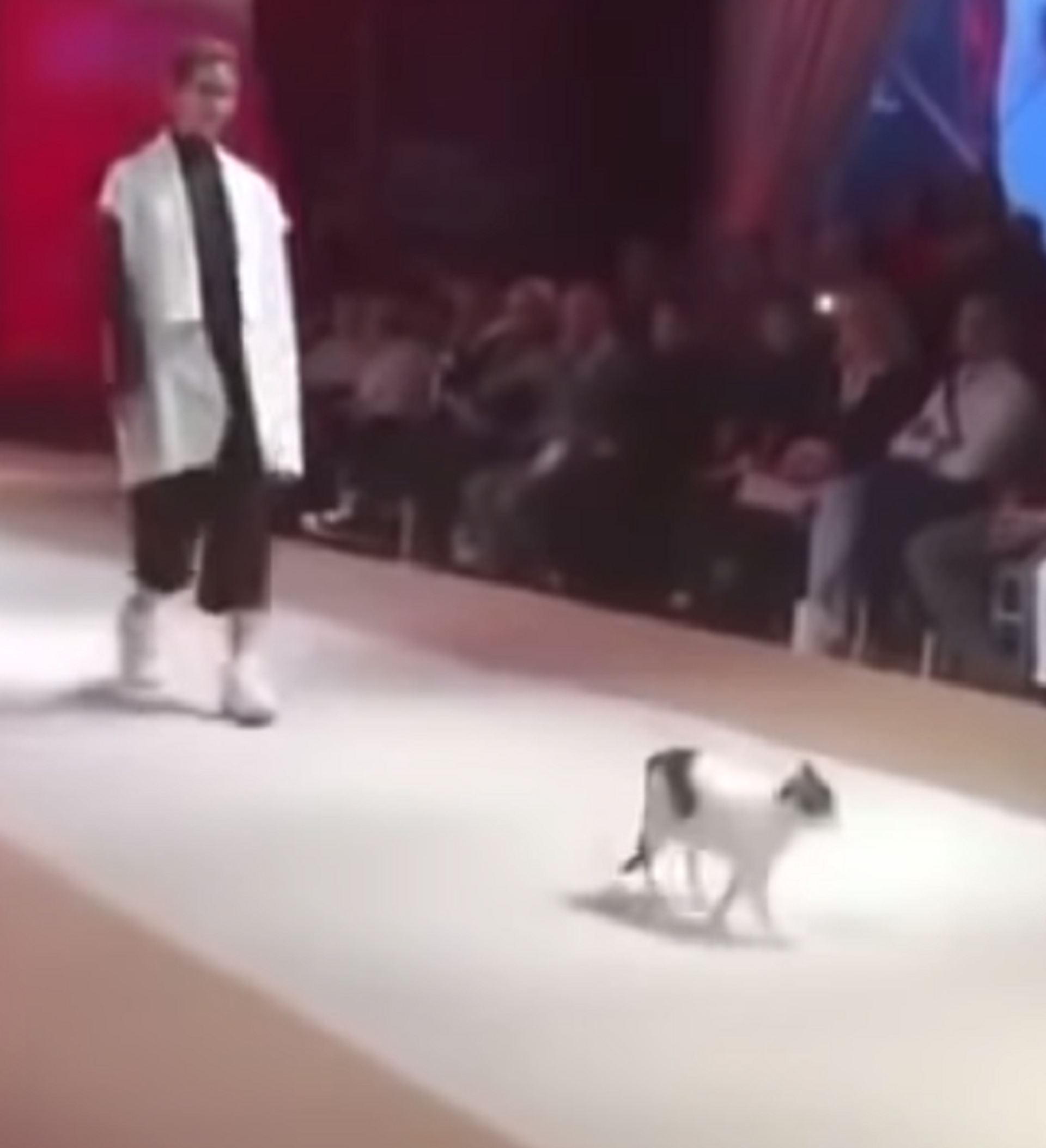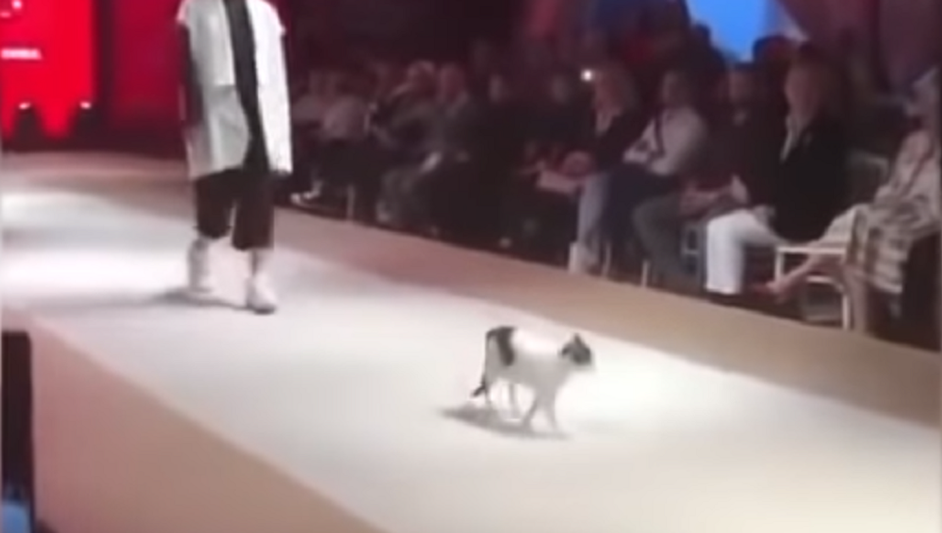 وظهرت القطة بشكل مفاجئ على مسرح العرض، وسط ضحك الجمهور، الأمر الذي أدى إلى سرقة الانتباه من العارضات وتحوله للحيوان الأليف.