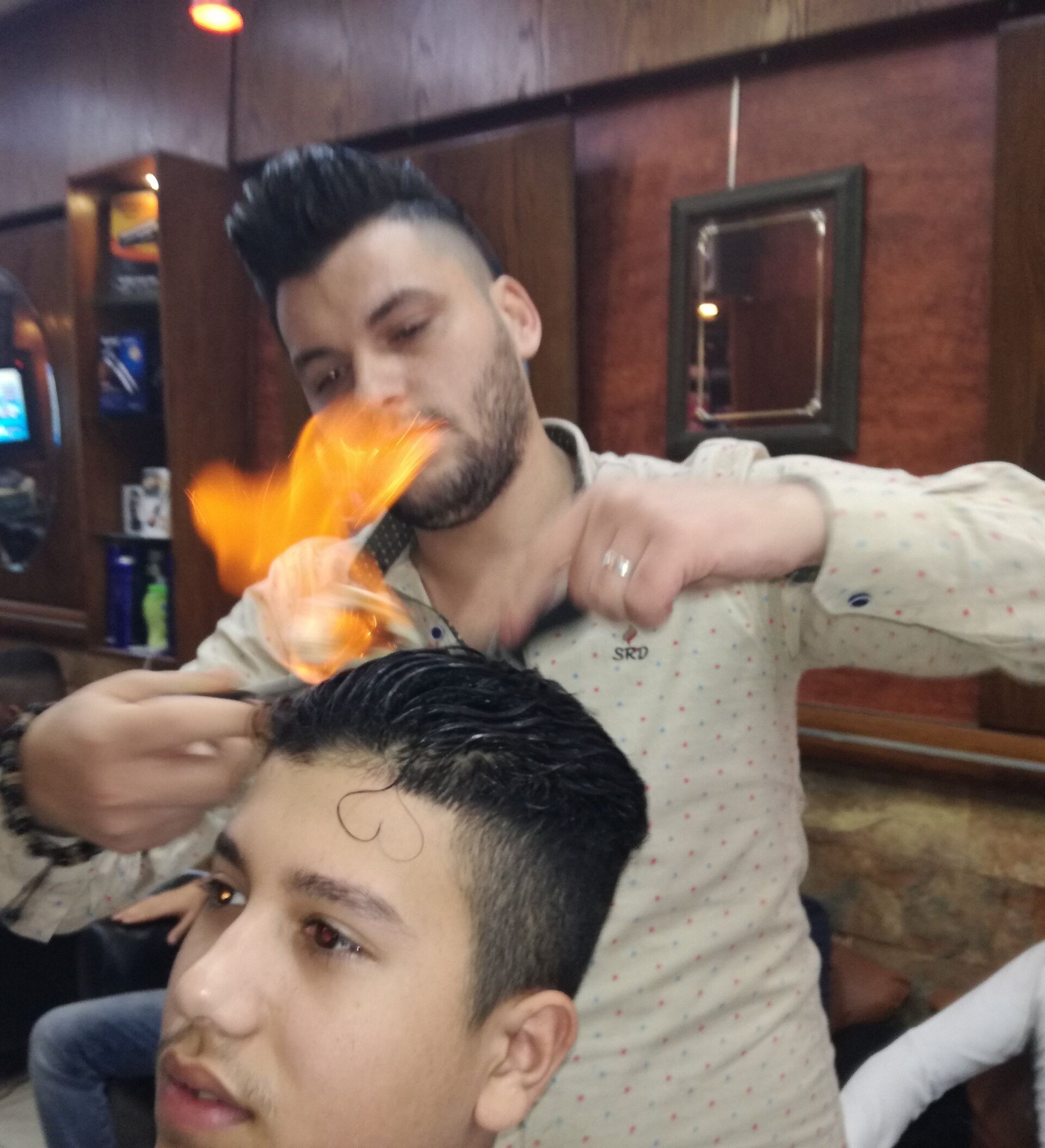 تبدو الحلاقة بالنار أمراً غريباً للوهلة الأولى، فسلامة الشعر والزبون على المحك، ولكن ما يثير الاهتمام هو الإقبال الكثيف لشريحة واسعة من الشبان الحلبيين لتجريب هذا