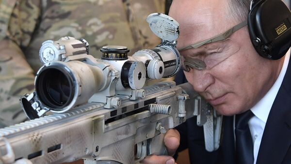 / وبات الخبراء يسمون بندقية تشوكافين بـ"بندقية بوتين" بعد أن جربها الرئيس الروسي بنفسه حين زار ميدان الرماية في بلدة كوبينكا بريف موسكو في سبتمبر/أيلول 2018.