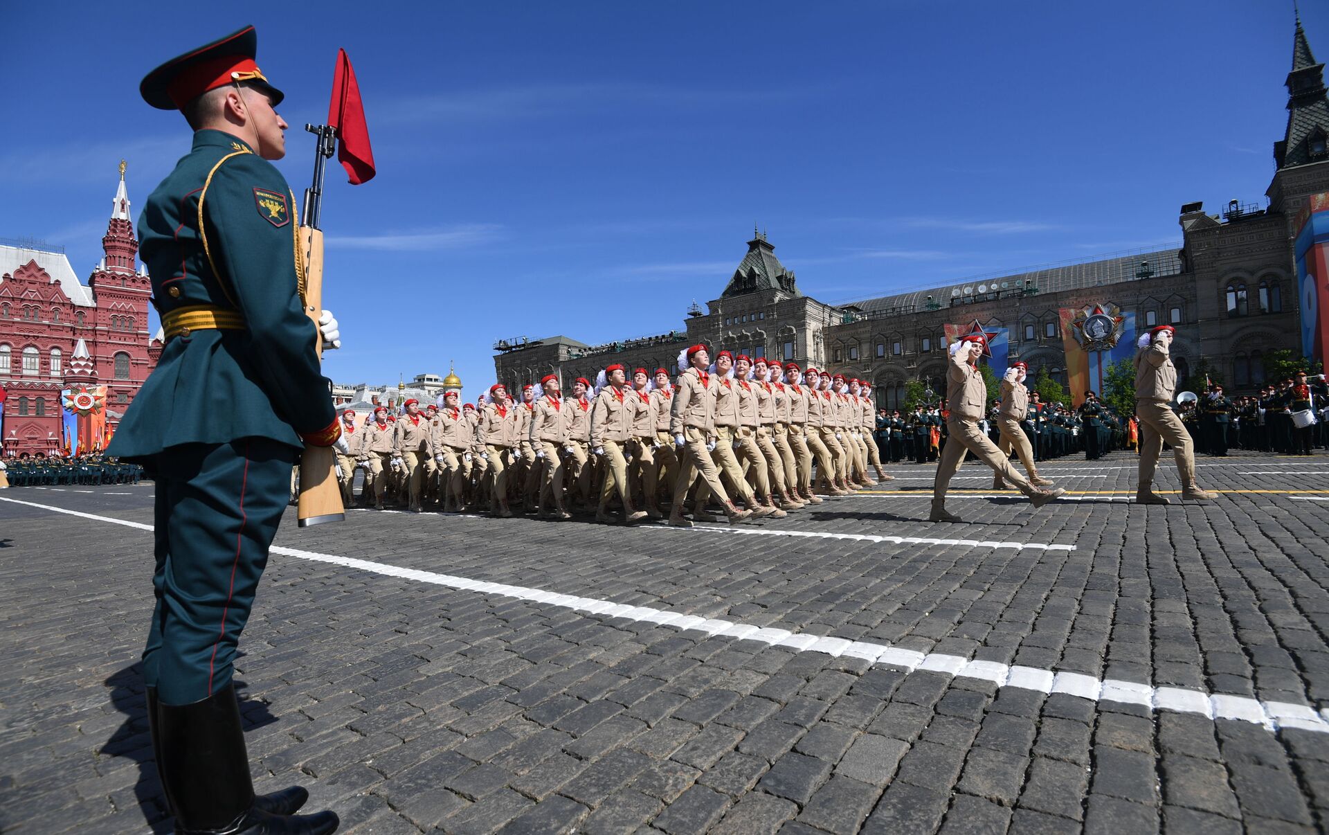 © Sputnik . Grigoriy Sisoev / الانتقال إلى بنك الصورعرض عسكري بمناسبة الذكرى الـ 73 لعيد النصر على قوات ألمانيا النازية في الحرب الوطنية العظمى (1941 - 1945) في موسكو، 9 مايو/ أيار 2018