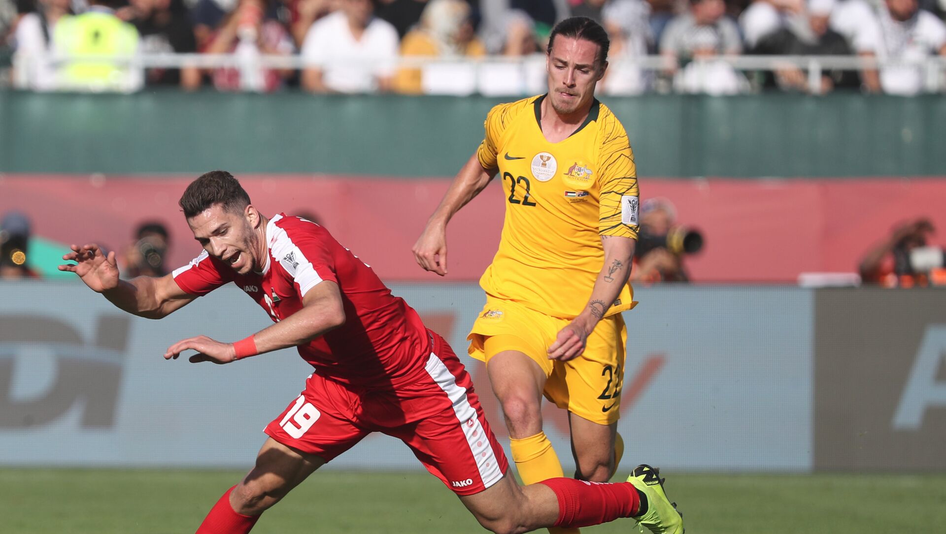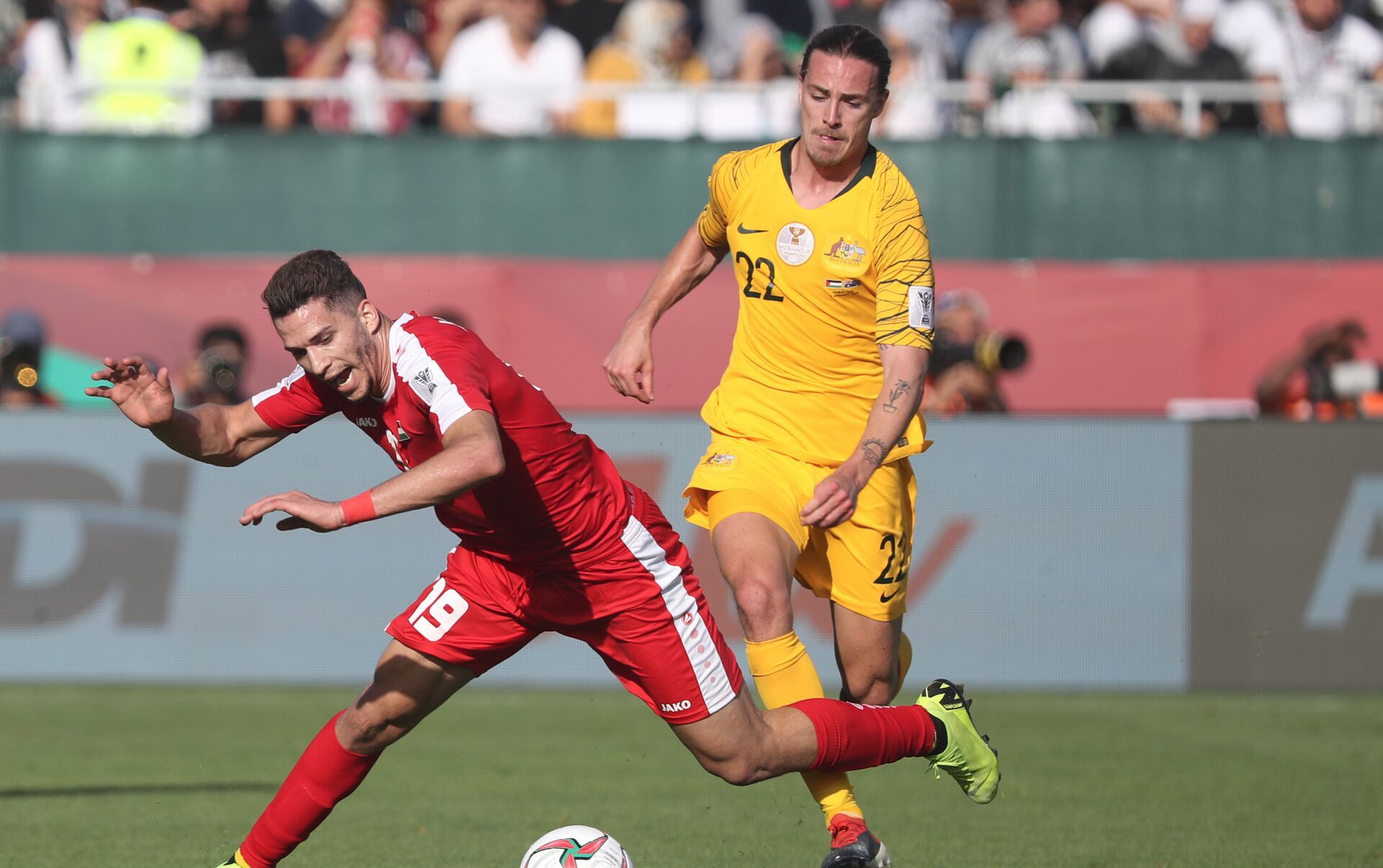 فاز المنتخب الأسترالي على نظيره الفلسطيني، اليوم الجمعة، بنتيجة 3-0، ضمن الجولة الثانية من المجموعة الثانية لكأس آسيا 2019. 11.01.2019, سبوتنيك عربي