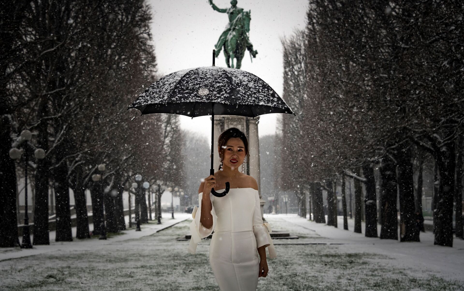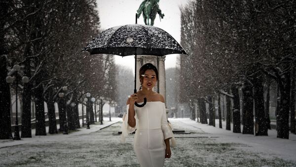 فتاة تقف للتصوير في باريس، 22 يناير/ كانون الثاني 2019 - سبوتنيك عربي