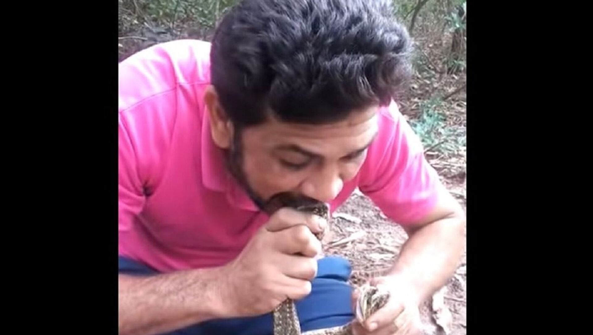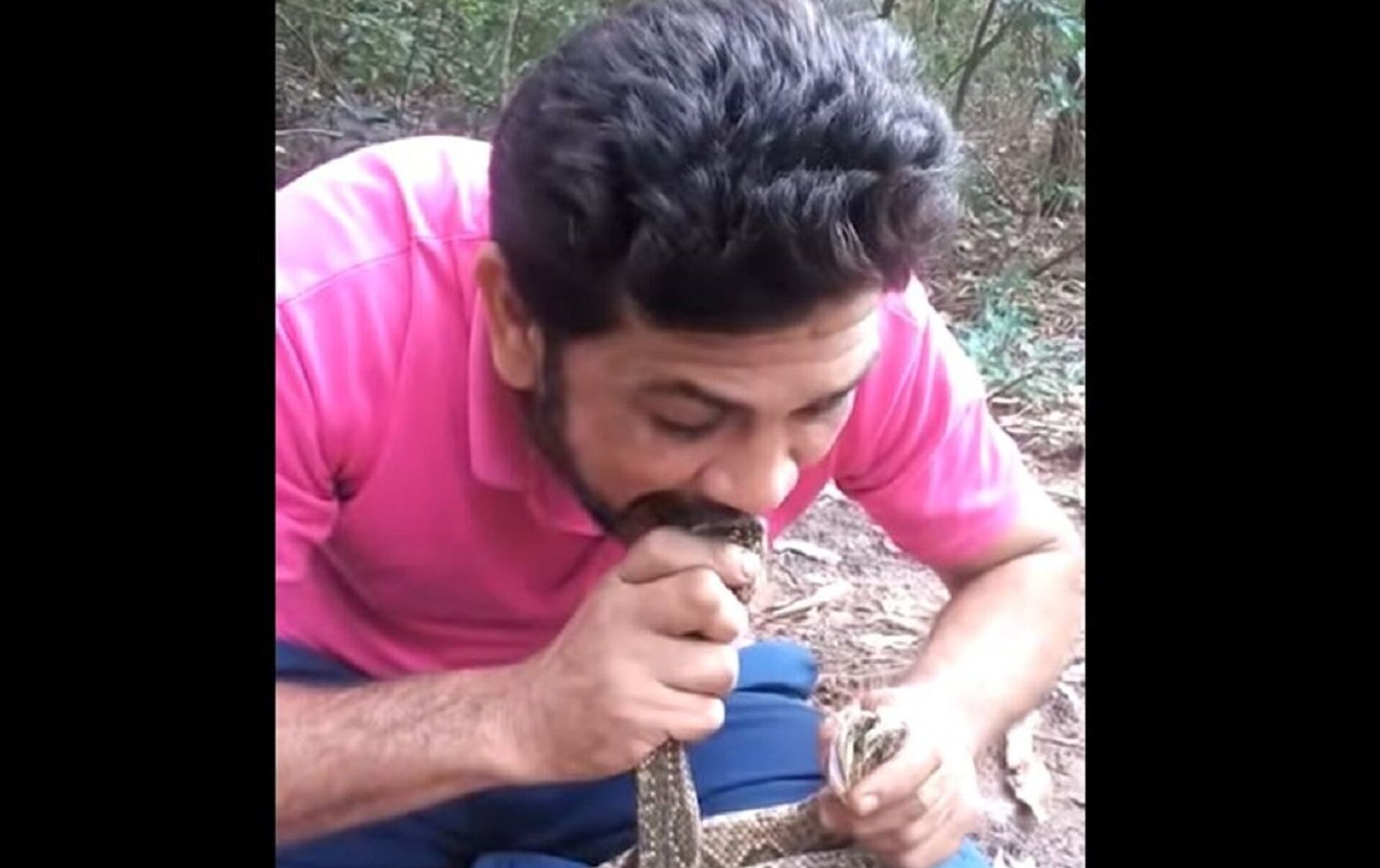 بالفيديو... ناشط يدس أربع أفاعي سامة في فمه