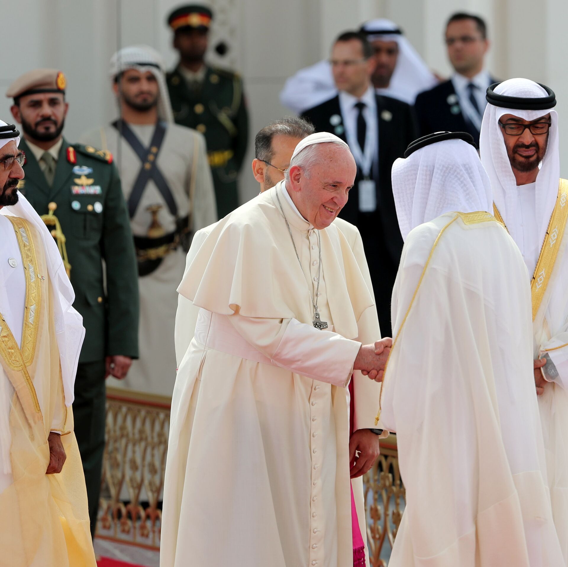 © REUTERS / Tony Gentileاستقبال بابا الفاتيكان فرنسيس في أبو ظبي، الإمارات العربية المتحدة 4 فبراير/ شباط 2019