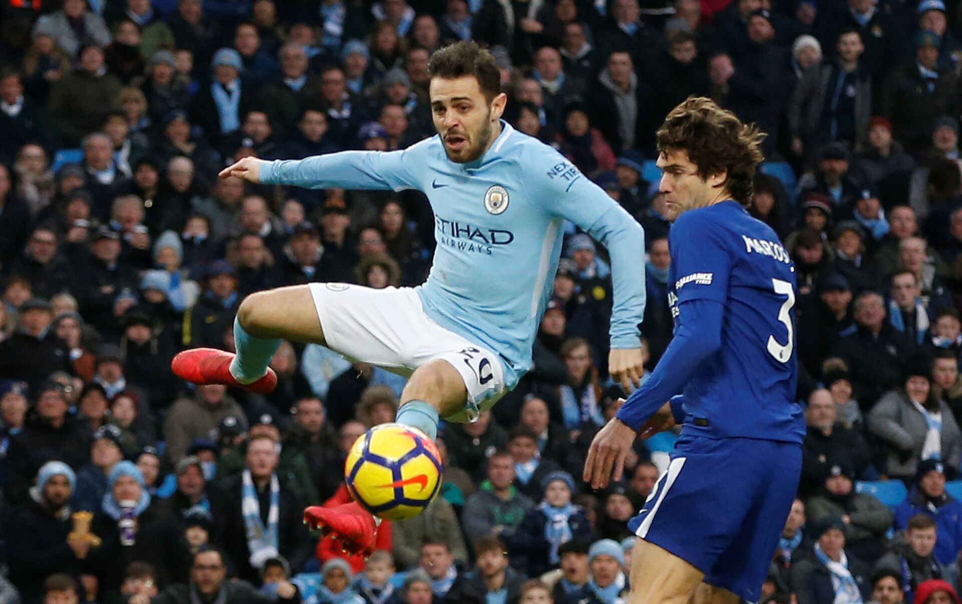 مباراة قمة الجولة 26 بين مانشستر سيتي وتشيلسي على ملعب الاتحاد، والتي يسعى كلا الفريقان للفوز بها لمواصلة التقدم في جدول الترتيب.