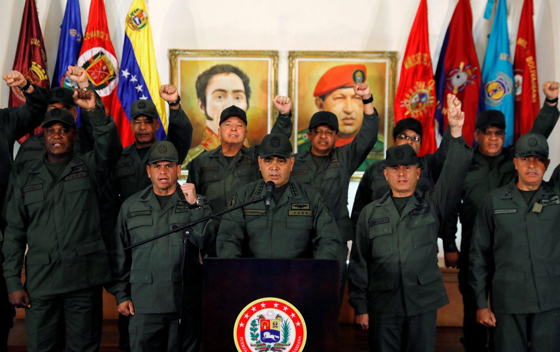 وأعلن الجيش الفنزويلي دعمه للرئيس الحالي نيكولاس مادورو، مؤكدا أنه لن يسمح لزعيم المعارضة بالوصول إلى الحكم.