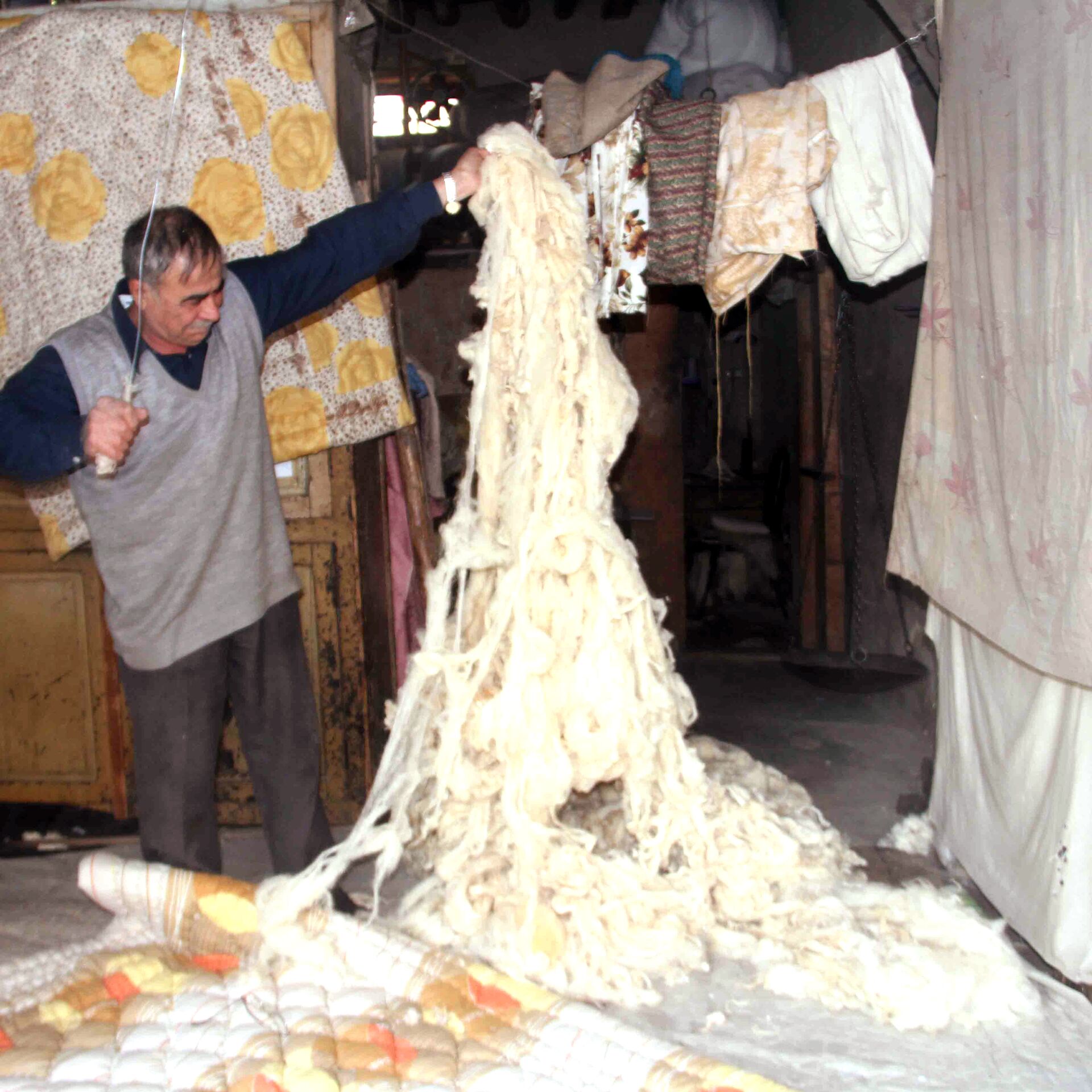 لم يتوقع "ياسين الشعار" المعروف بـ "أبو ممدوح المنجد" أن يصبح واحدا من القلائل في مهنته، ولا سيما في حي الميدان الدمشقي، ففي زمن سابق كان لأصحاب الحرفة محلات كثيرة في معظم المناطق عدا عن سوق خاص بهم في منطقة "باب الجابية" يسمى "سوق الصوف أو سوق القطن"، يعود تاريخه إلى الفترة المملوكية بين عامي 1250 و1517 ميلادي، طرأت عليه تغييرات كبيرة غيرت ملامحه حتى اختفت دكاكين بيع الصوف وحلت مكانها أخرى تبيع الألبسة الجاهزة.