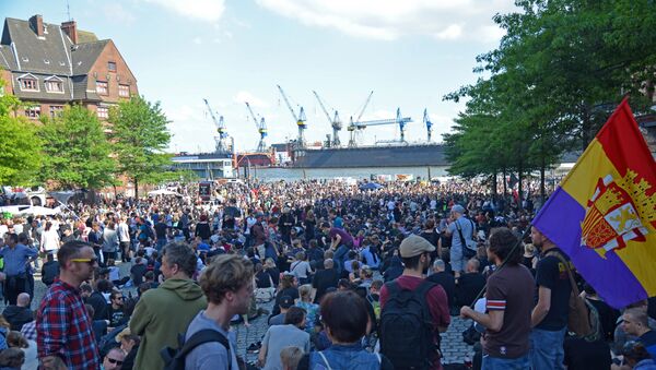 © Sputnik . Aleks Pantsikoffتجمع المتظاهرين في هامبورغ قبل بدء اجتماع "قمة العشرين"