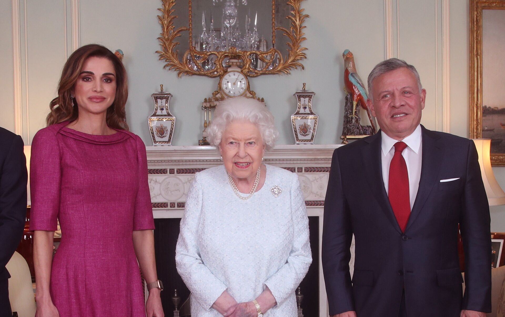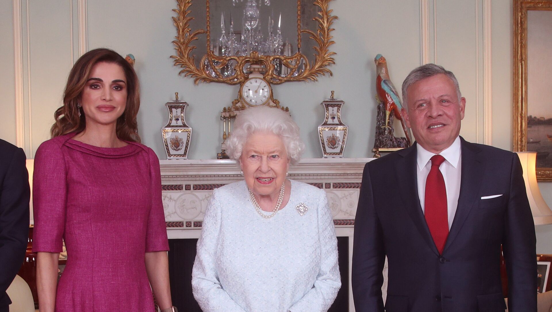 ونشر الحساب الرسمي للعائلة الملكة البريطانية على موقع "تويتر"، صورة رسمية تجمع ملك بريطانيا (92 عاما) مع الملك عبد الله الثاني وزوجته الملكة رانيا، خلال زيارتهما إلى قصر باكنغهام، أمس الخميس، بحسب صحيفة "ميرور" البريطانية.