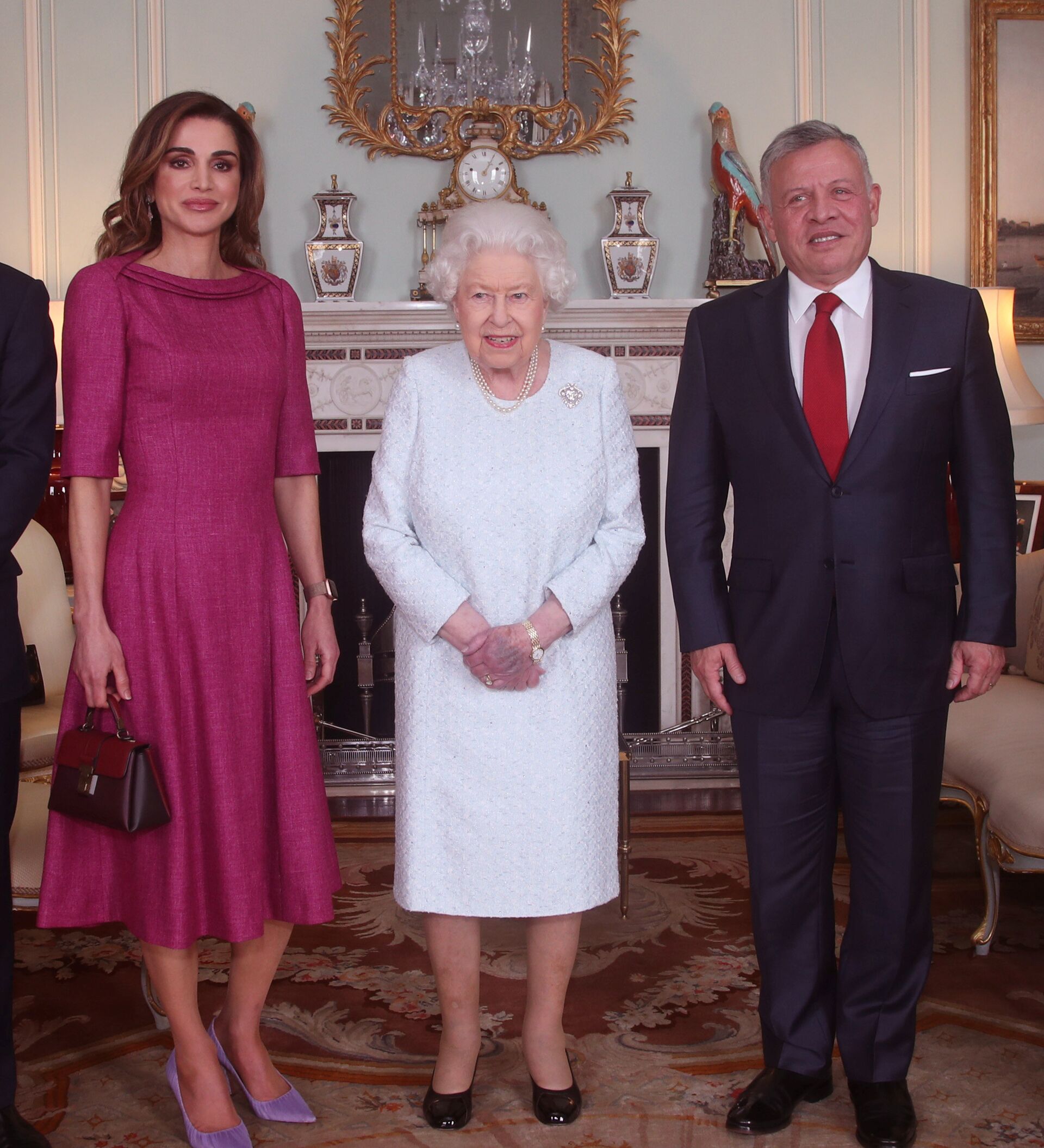 Today The Queen, with The Princess Royal, hosted Their Majesties The King and Queen of the Hashemite Kingdom of Jordan, @KingAbdullahII and @QueenRania, and their son The Crown Prince at Buckingham Palace. pic.twitter.com/jMjdm5na8h