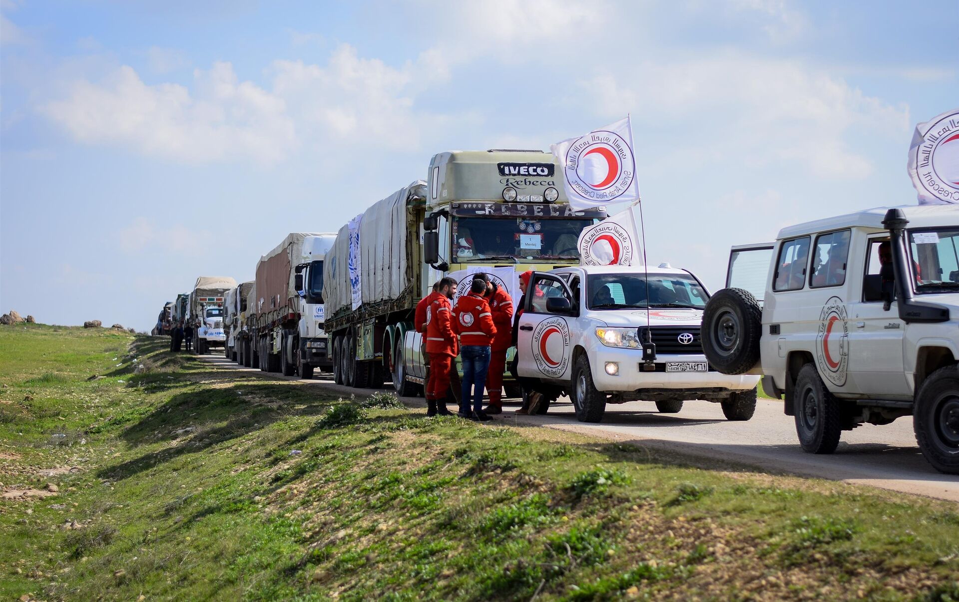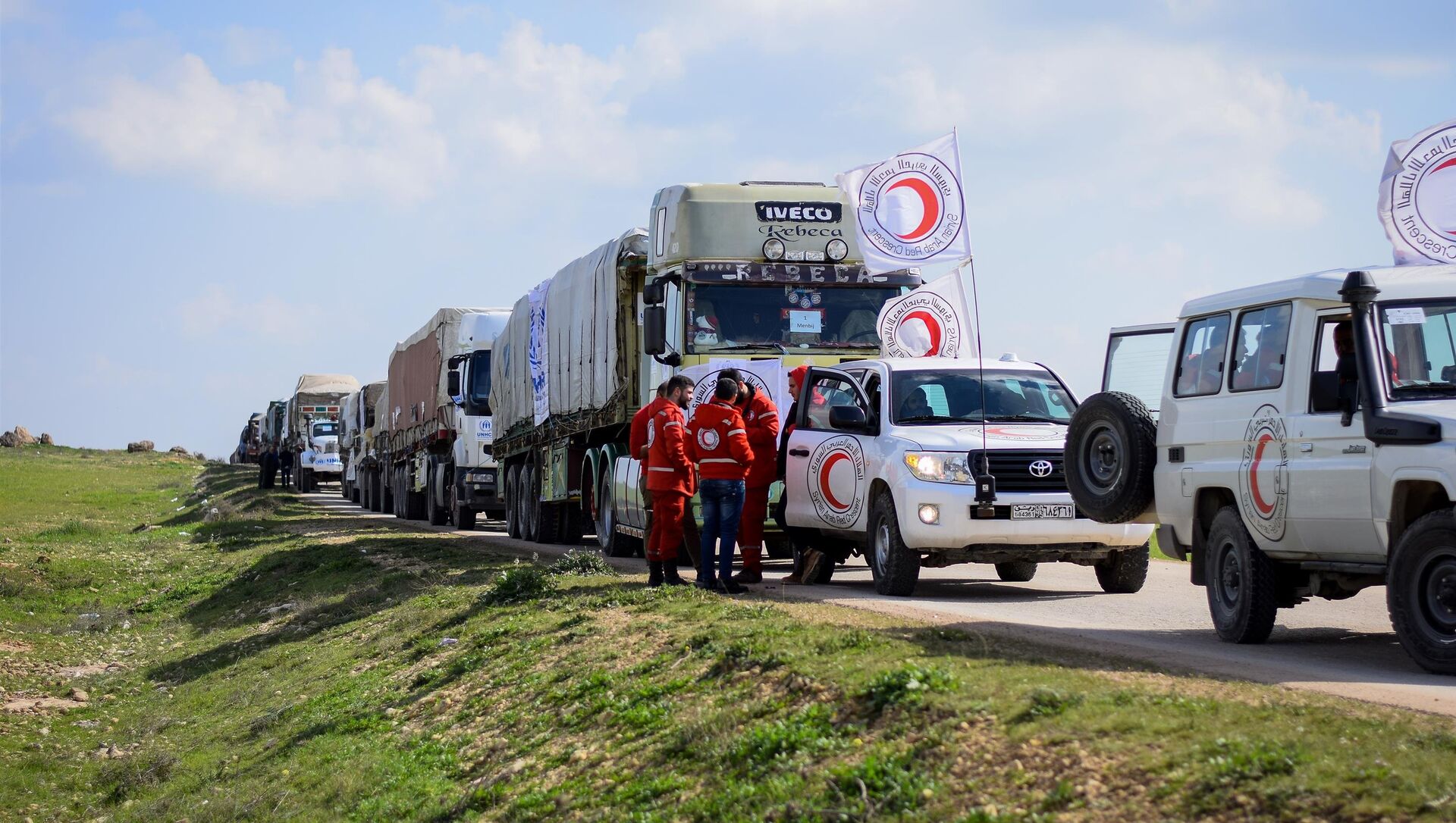 وبينت المصادر أن القافلة المشتركة بين الهلال الأحمر العربي السوري والأمم المتحدة، تنقل 10 آلاف سلة غذائية ومثلها من أكياس الطحين، إضافة إلى سلل معلبات وبطانيات وفرشات وملابس شتوية وشوادر وحقائب مدرسية وقرطاسية وسلل نظافة شخصية، والمواد الصحية والحقائب الترفيهية والموسيقية ومواد تغذية والأدوية وغيرها من المواد الإغاثية الضرورية.