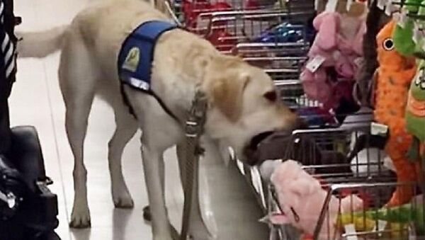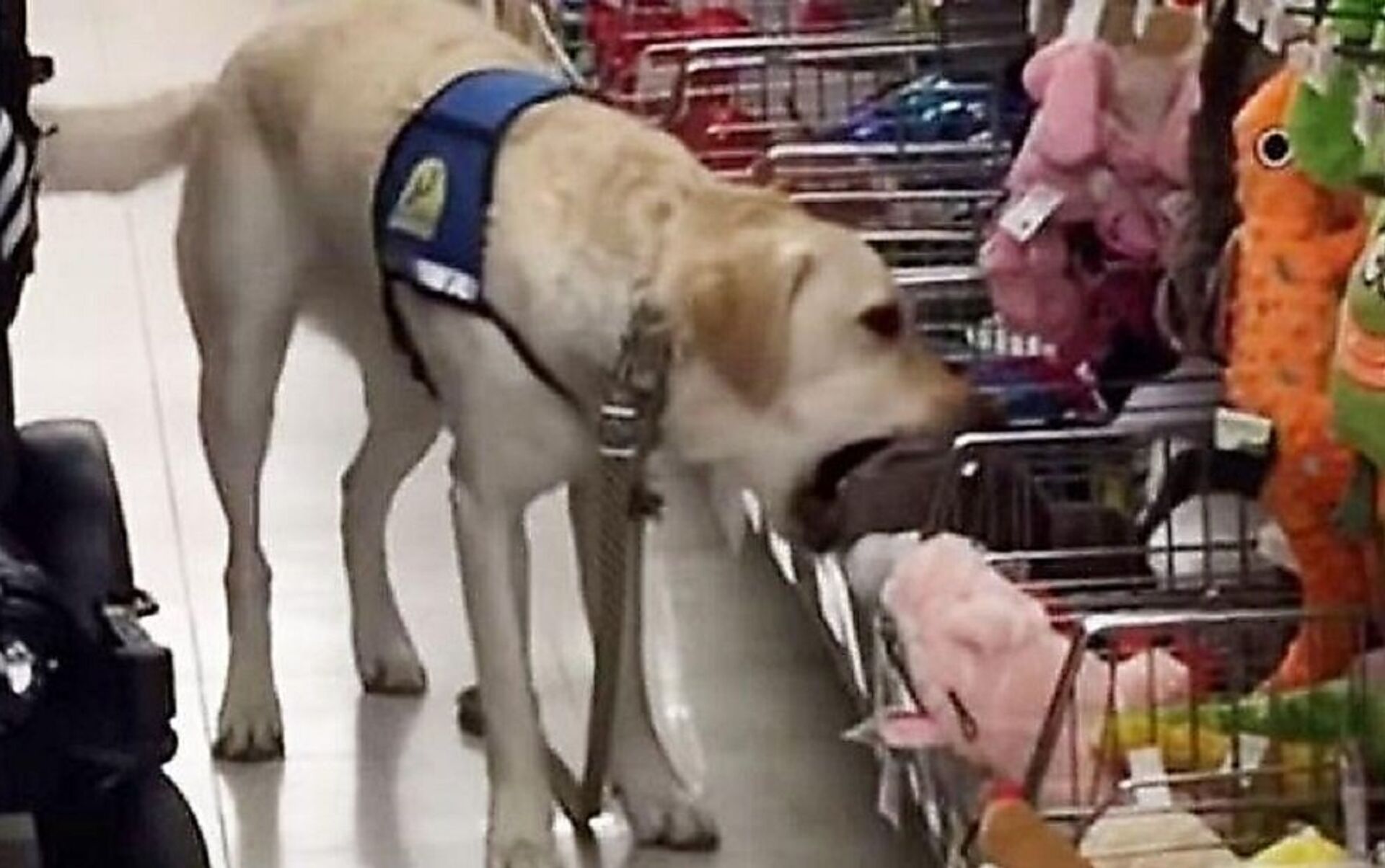كلب يتسوق في مركز تجاري ويختار هدية لنفسه بمناسبة عيد ميلاده (فيديو)