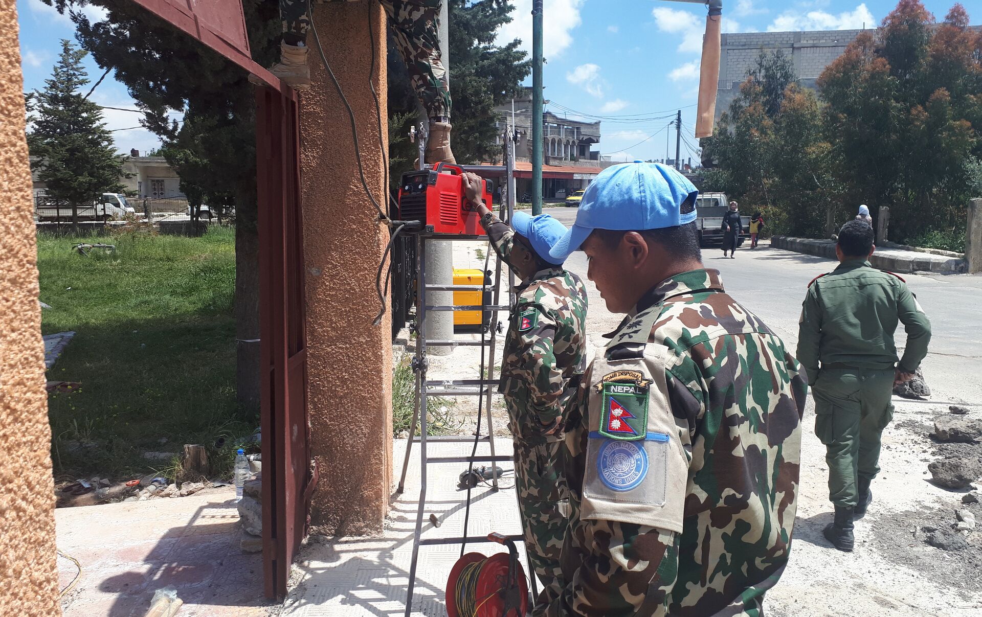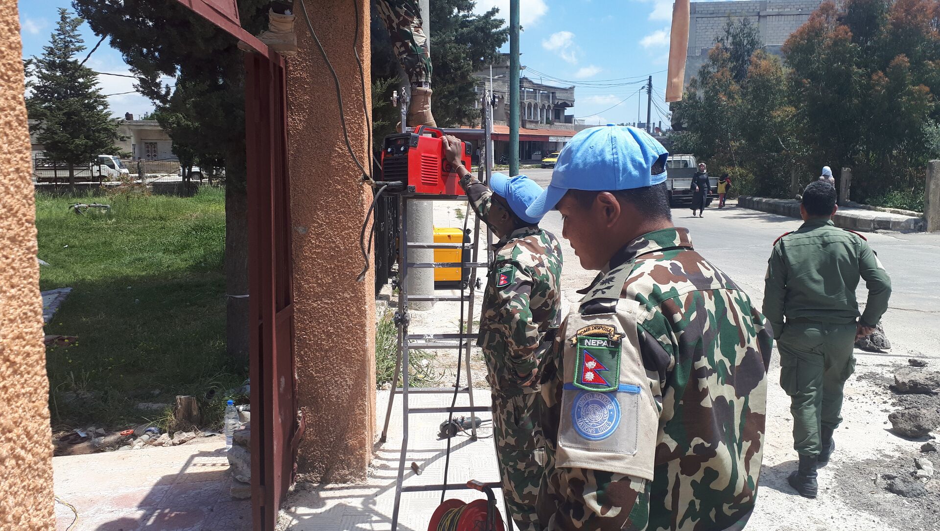 ورصدت عدسة "سبوتنيك" في القنيطرة قيام عدد من جنود قوات الأمم المتحدة "الأندوف" من الجنسية النيبالية بتأهيل إحدى الحدائق العامة في بلدة خان أرنبة والمساعدة بإصلاح بابها الرئيسي وسورها الخارجي وعددا من "مراجيح الأطفال".