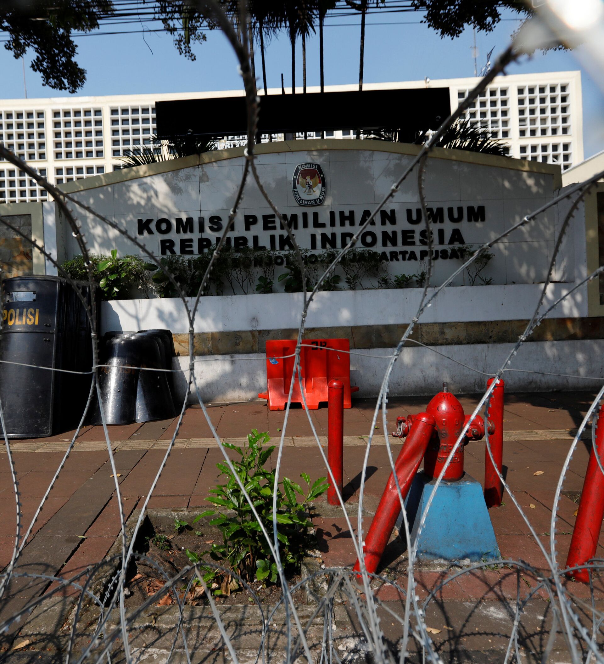 ونشرت السلطات أفراد أمن مدججين بالأسلحة بعضهم برفقة كلاب مدربة خارج مقر مفوضية الانتخابات في وسط جاكرتا.