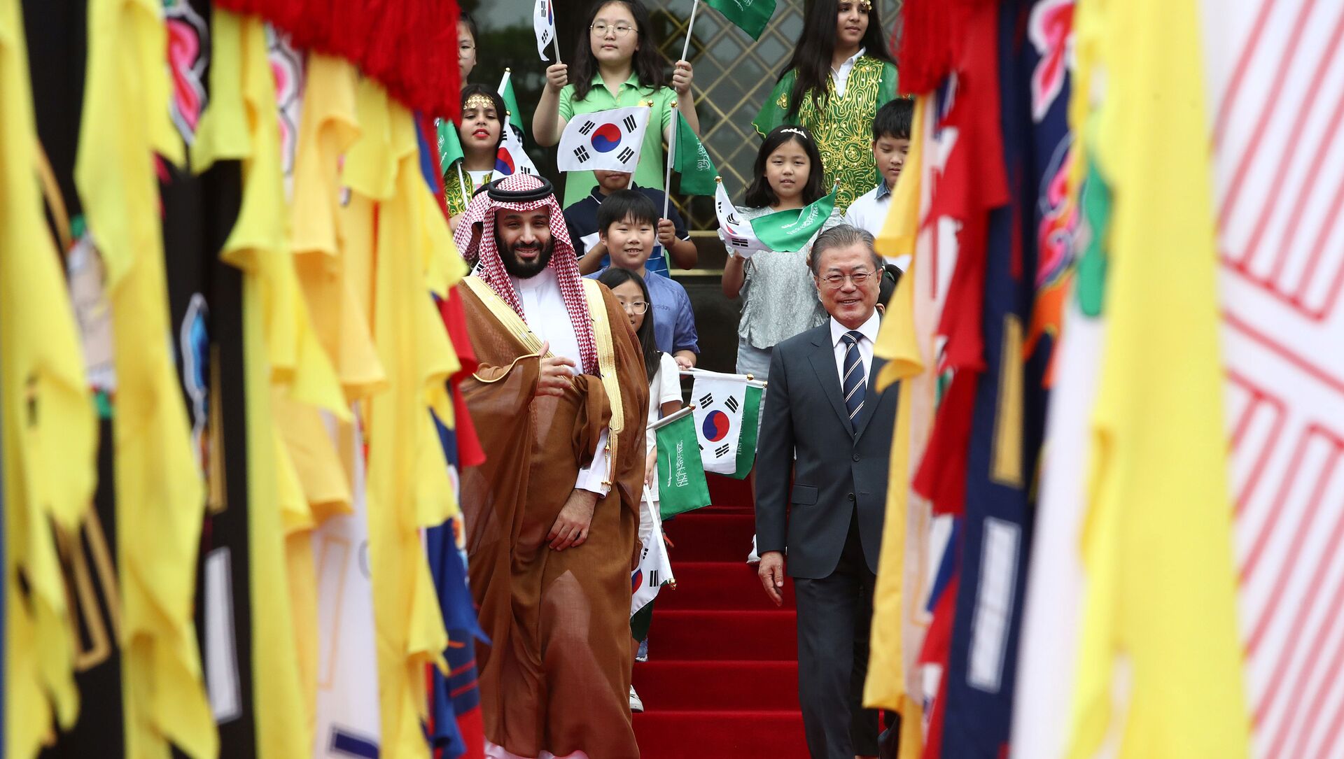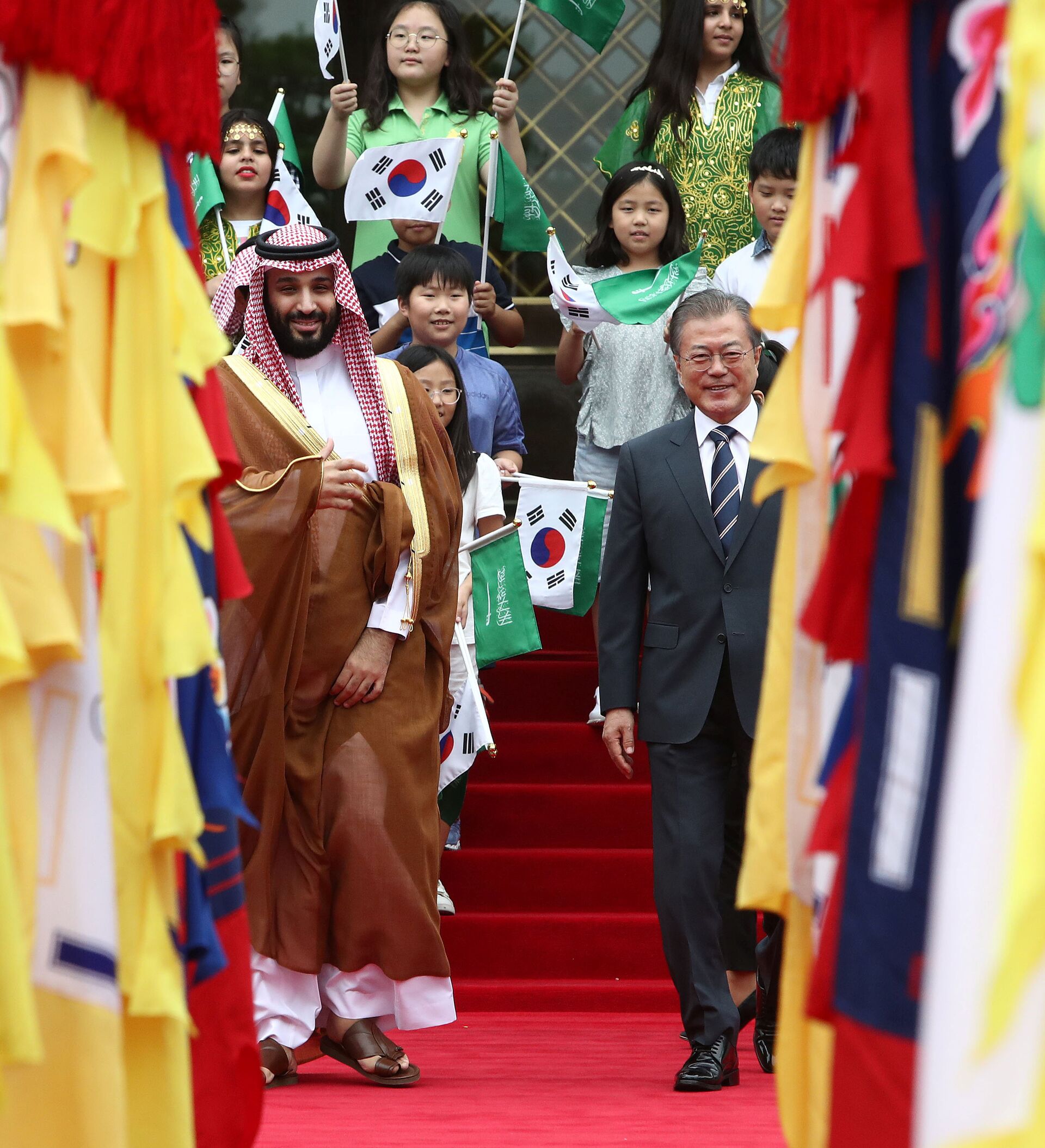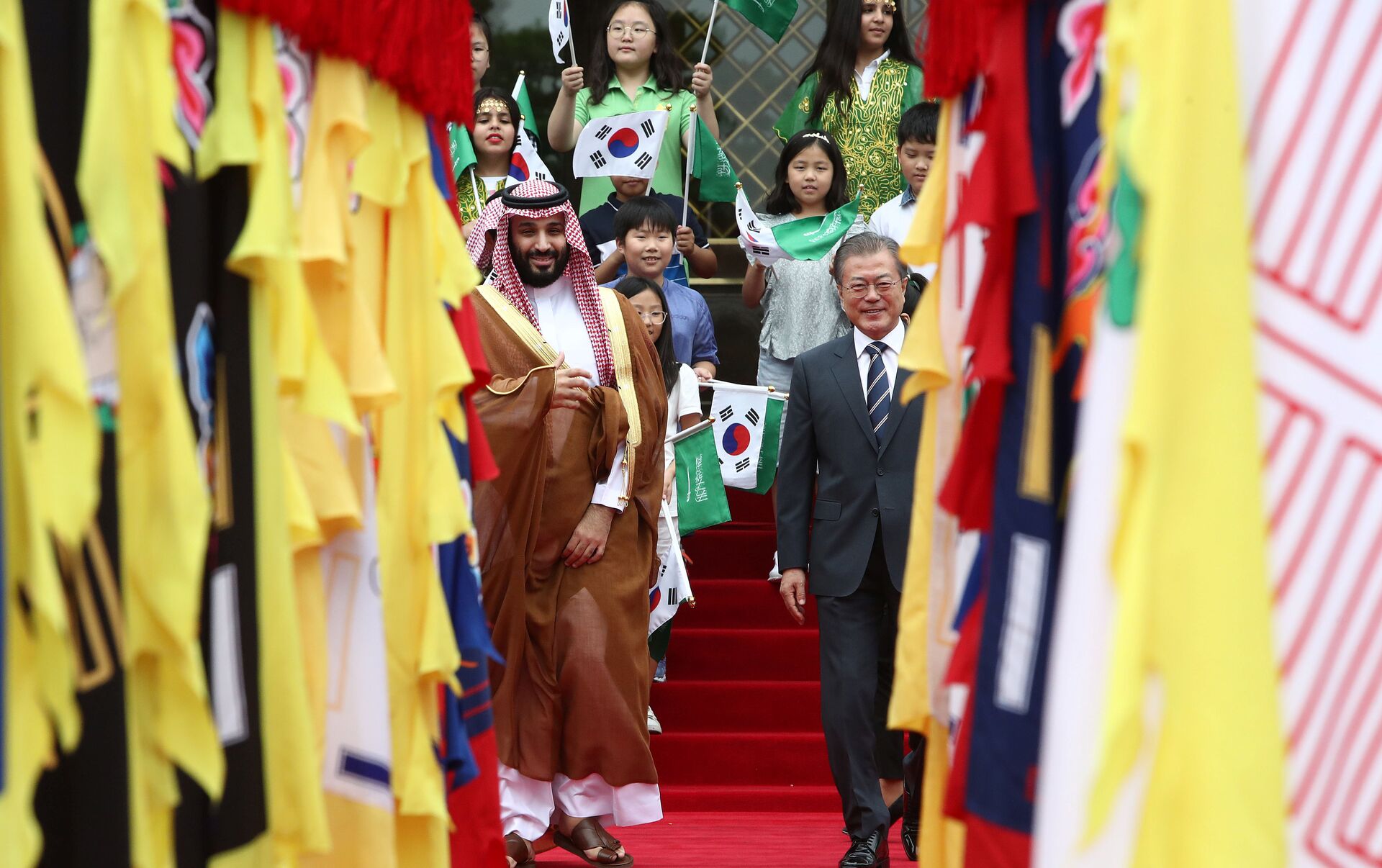 © REUTERS / Prince Mohرئيس كوريا الجنوبية في استقبال ولي العهد السعودي محمد بن سلمان