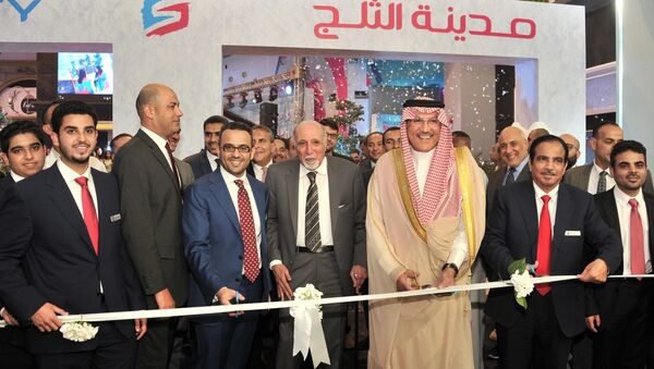 أسامة نقلي، سفير السعودية لدى مصر‬ أثناء افتتاحه مدينة الثلج - سبوتنيك عربي