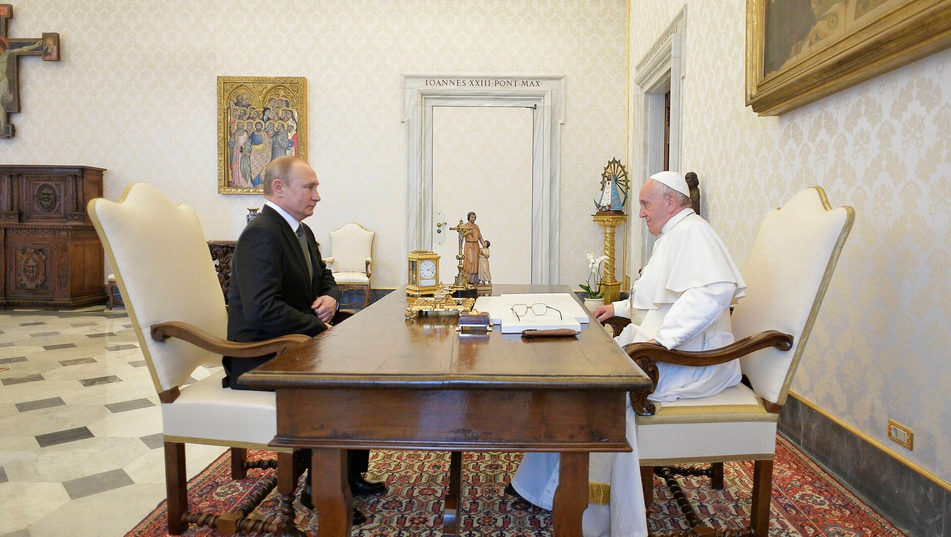 يشار إلى أن الاجتماع بين الرئيس الروسي وبابا الفاتيكان يجري بشكل مغلق، وبوجود مترجم فوري فقط.