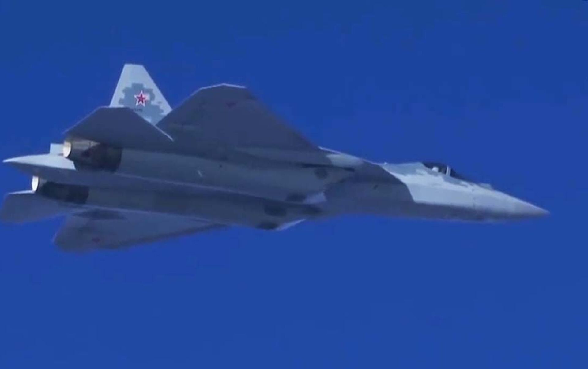 © Sputnik . The Ministry of Defence of the Russian Federation / الانتقال إلى بنك الصورالمقاتلات الحديثة من الجيل الخامس "سو-57" في سماء سوريا