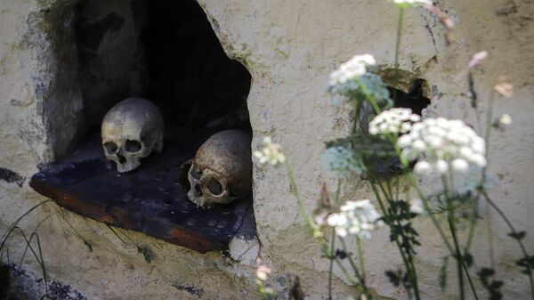 © Sputnik . Denis Abramov / الانتقال إلى بنك الصورجماجم وعملات معدنية في مقبرة على أراضي "مدينة الموتى" في جمهورية أوسيتيا الشمالية الروسية - ألانيا