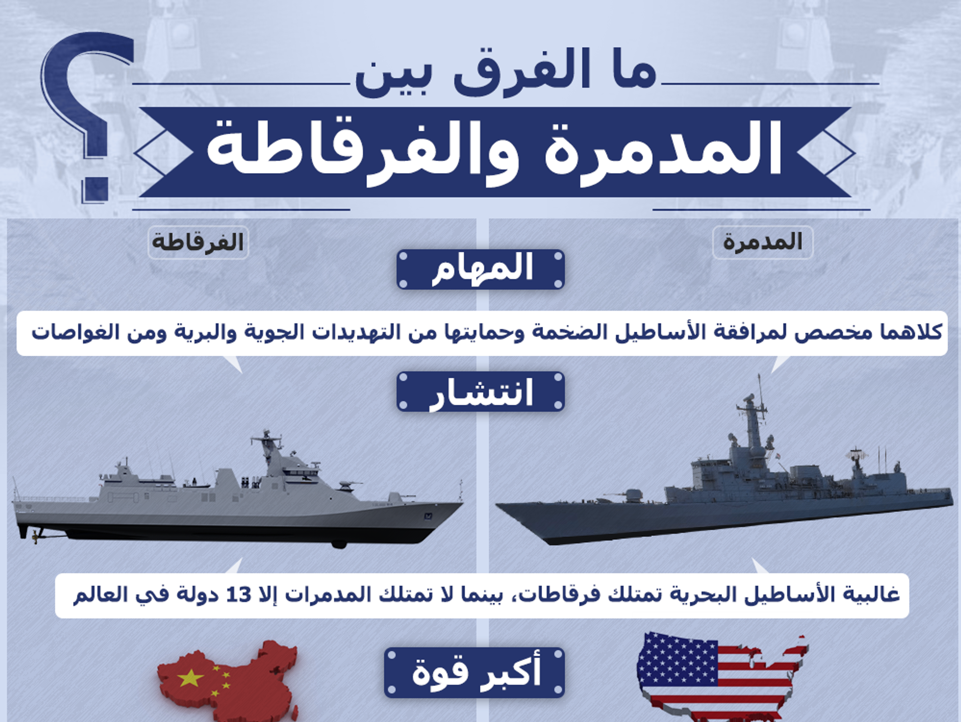 ما الفرق بين المدمرة والفرقاطة