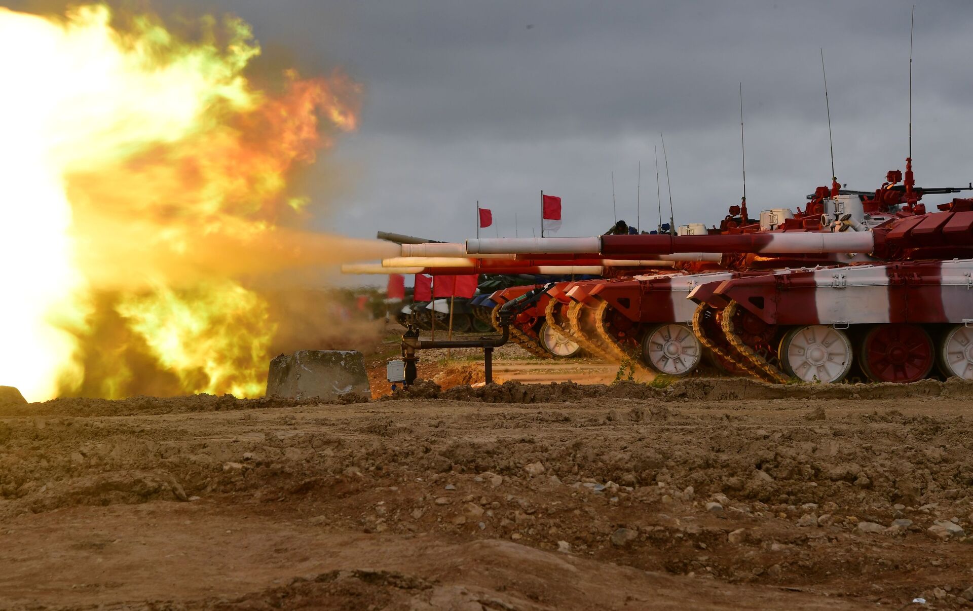 © Sputnik . Alexey Kudenko / الانتقال إلى بنك الصور دبابات "تي 72بي3" لفريق الجيش الروسي تطلق النار قبل بدء المسابقة الدولية "بياثلون الدبابات - 2019" في ميدان التدريب ألابينو بالقرب من موسكو دبابات "تي 72بي3" لفريق الجيش الروسي تطلق النار قبل بدء المسابقة الدولية "بياثلون الدبابات - 2019" في ميدان التدريب ألابينو بالقرب من موسكو