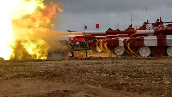 © Sputnik . Dmitriy Shorkov سباق "بياتلون الدبابات 2-19" - طاقم الدبابات من سوريا في حقل ألابينو بضواحي موسكو