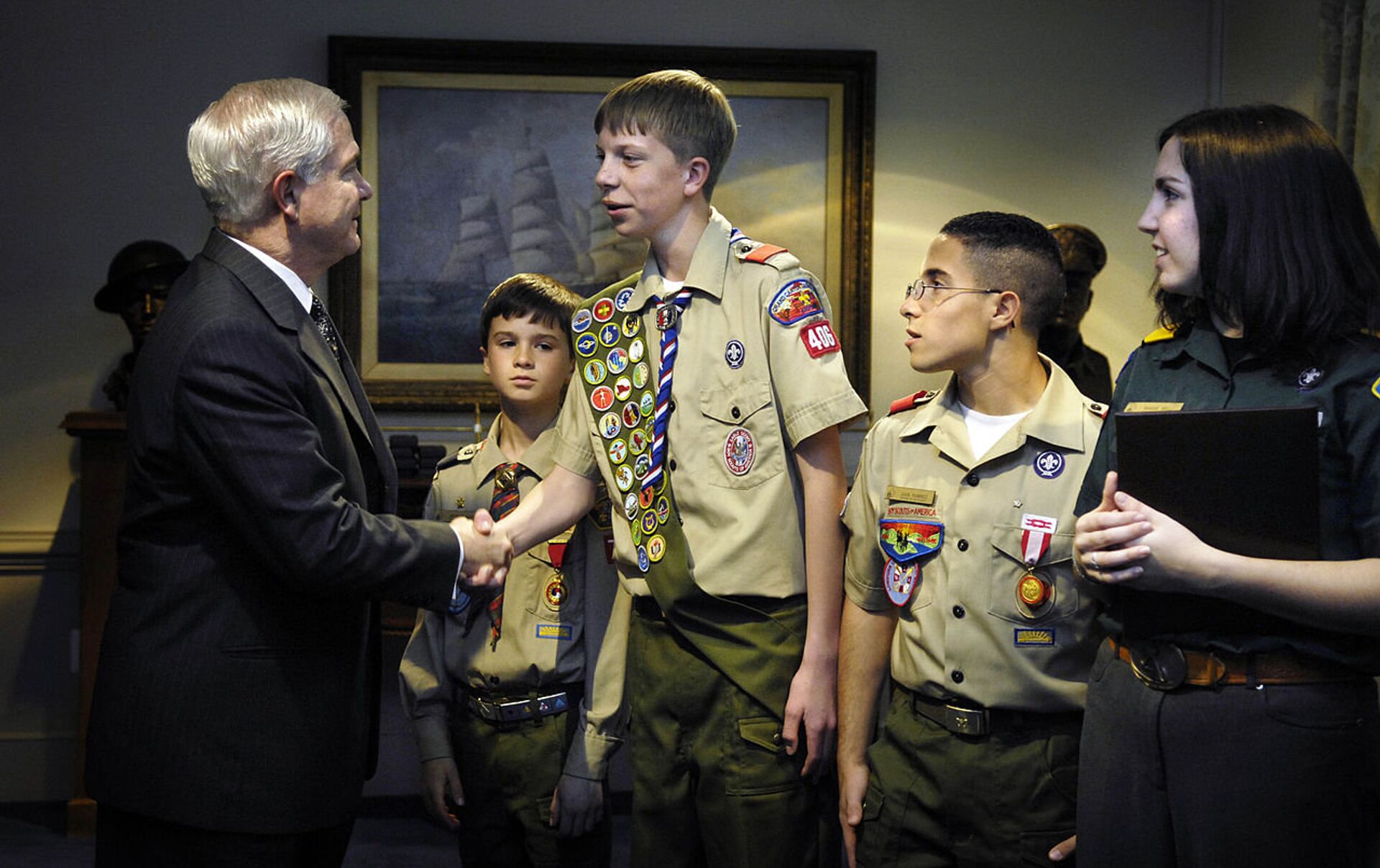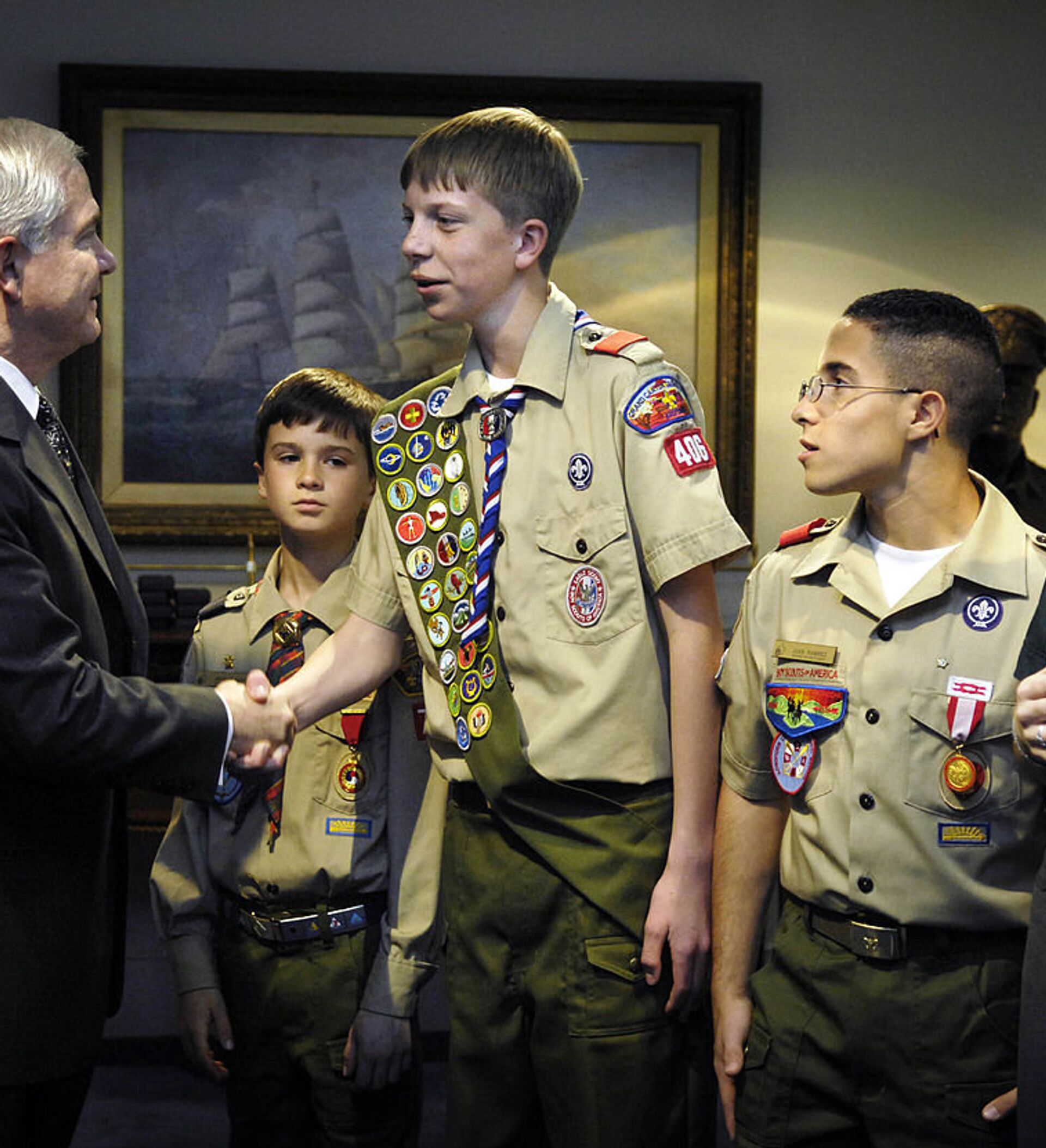 Yes, it’s called “Boy Power”. I’m sure you know Rockwell was devoted to the Boy Scouts of America and painted many portraits for them. The gentleman in the upper left corner was my boss and President of the BSA at the time. It was always a thrill to study it hanging in his office pic.twitter.com/1kcFm66W7c