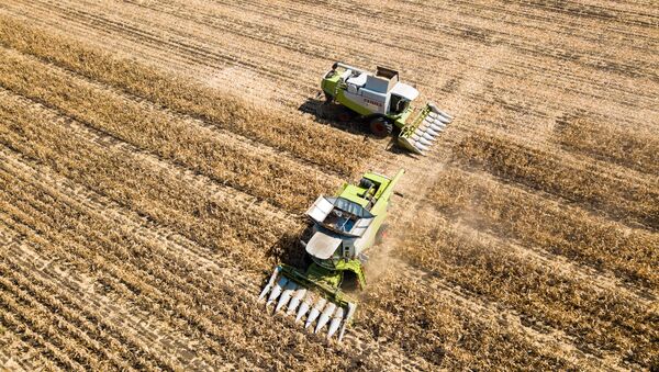 © Sputnik . Vitaliy Timkiv / الانتقال إلى بنك الصورحصاد بذور الذرة في قرية لادوغا ، إقليم كراسنودار