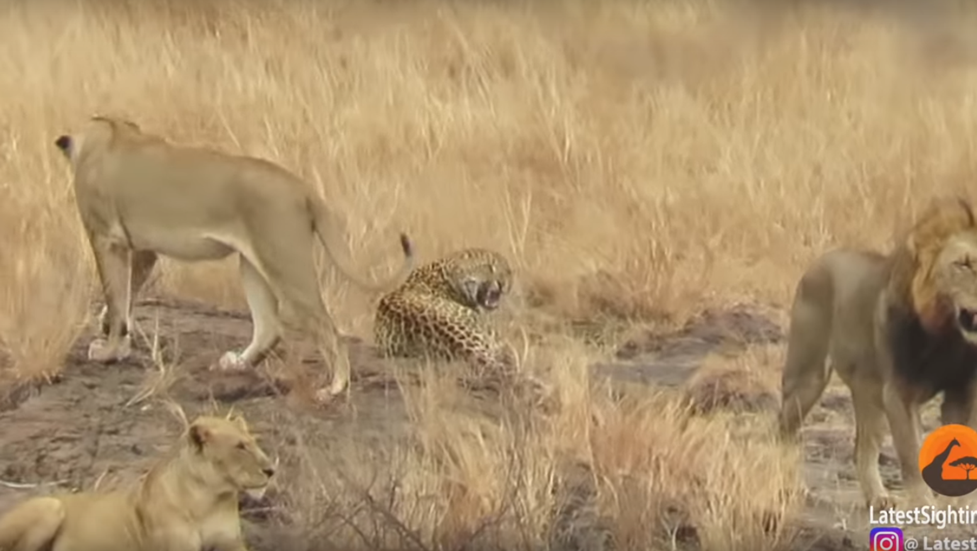 انتشر فيديو عبر وسائل التواصل الاجتماعي يرصد لحظة هروب فهد من مجموعة أسود كانت تشكل خطرا على حياته.