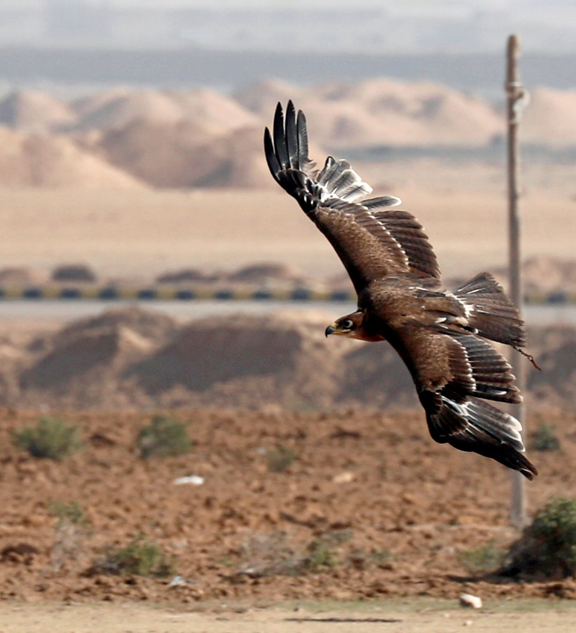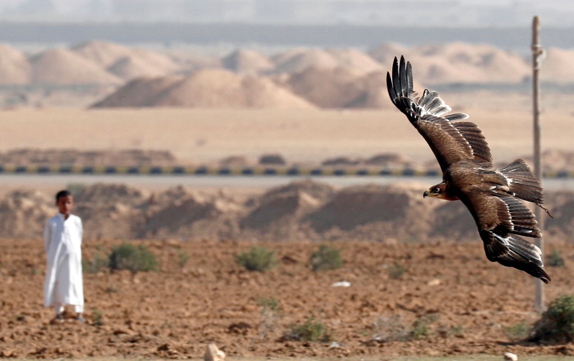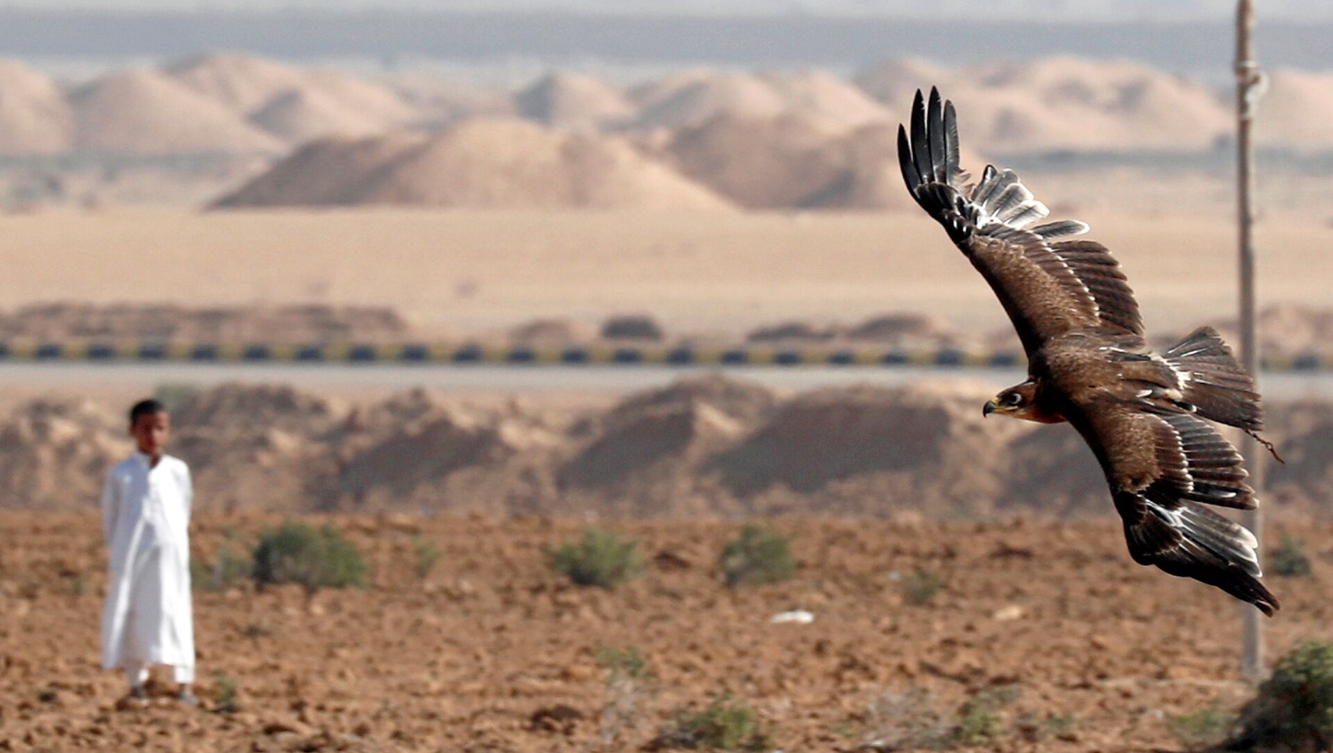 وبعد التدريب لمرات عدة يخرج الصقار بطائره للبر ليختبر سرعة ردة فعله في اصطياد فريسة حقيقية، واستجابته لصوت صاحبه وعودته إلى مكانه عند ندائه.