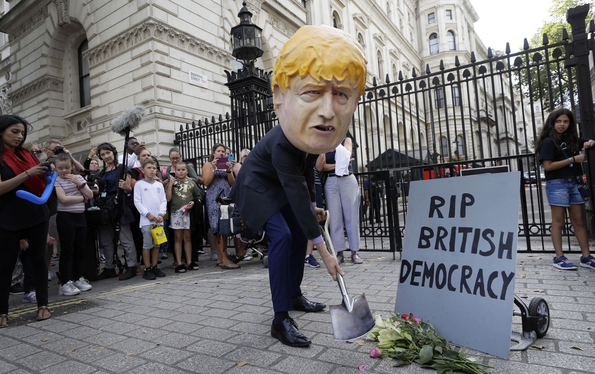 © AP Photo / Kirsty Wigglesworthمظاهرات في شوارع لندن احتجاجا على قرار الملكة البريطانية إليزابيث الثانية بتعليق البرلمان، 28 أغسطس/ آب 2019