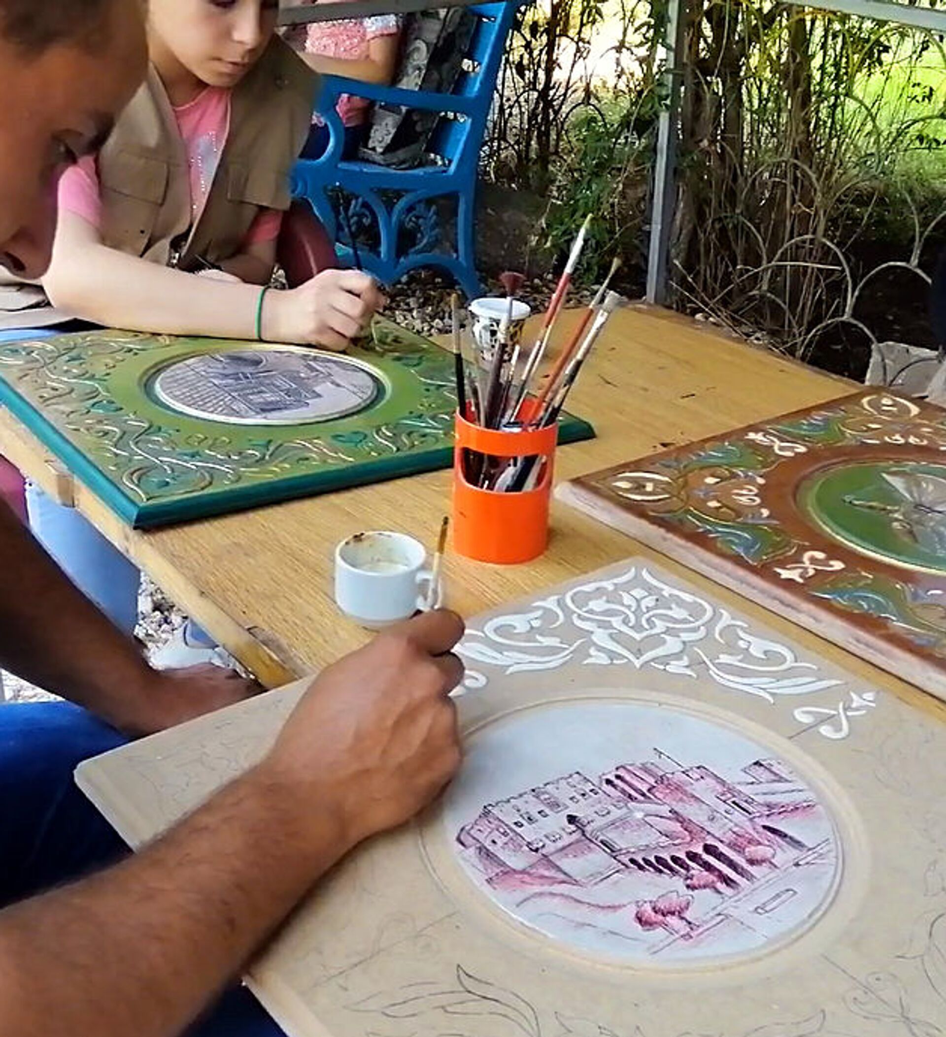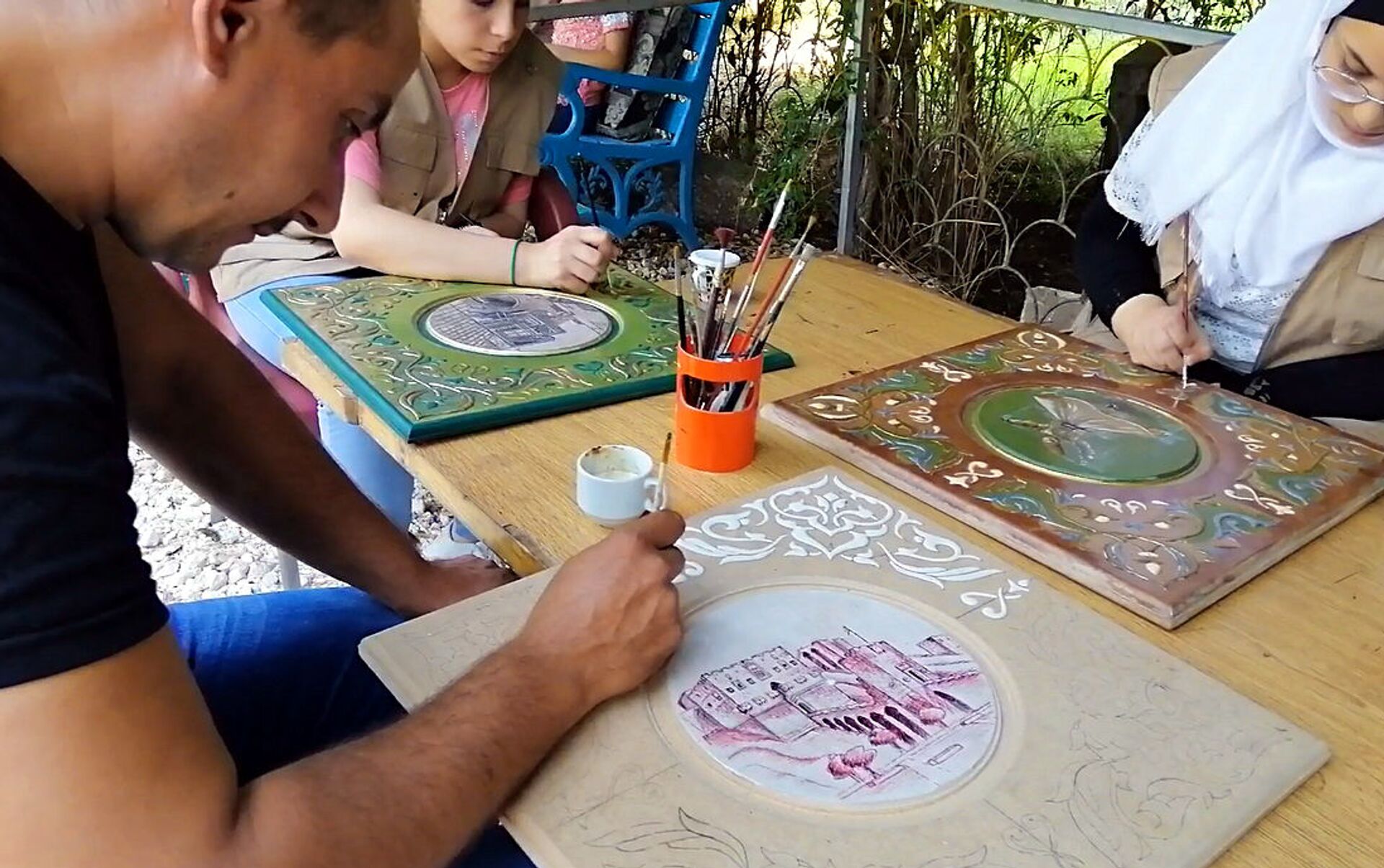 يقول شيخ الكار للزخرفة النافرة في حلب أيمن السعيد الذي يعمل على نقل خبرته ومهارته إلى جيل الشباب في المركز السوري المحترف: نعمل في مجال الحرف التقليدية التراثية منذ ثلاثين عاماً، وهذه الحرف أعطت للبيوت الحلبية على مر القرون هويتها التراثية المميزة، لكونها حرف تمتد جذورها التاريخية في حلب لآلاف السنين، ومن أهم هذه المهن الرسم النافر على الخشب أو الفن السوري.
