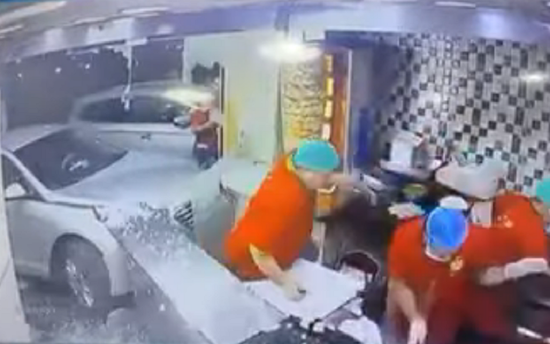 حطمت سيارة تقودها سيدة واجهة مطعم في السعودية، كما تجاوزت الواجهة لتقتحم المطعم على العاملين والزبائن.