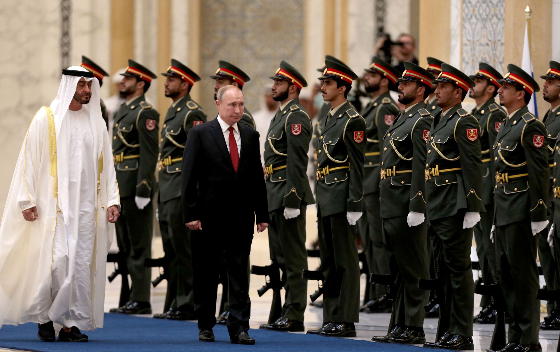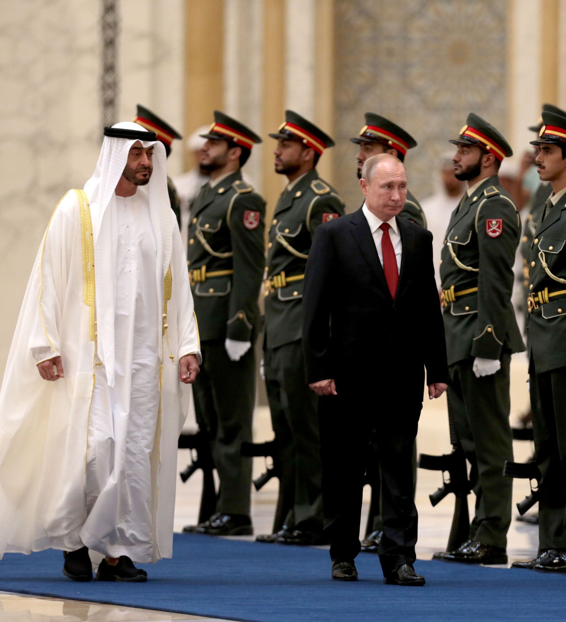 وحملت سيارات الشرطة الإماراتية التي رافقت سيارة الرئيس الروسي فلاديمير بوتين أثناء سيرها إلى قصر ولي عهد أبوظبي محمد بن زايد، كتابة "ДПС" وهي حروف اسم شرطة المرور الروسية.
