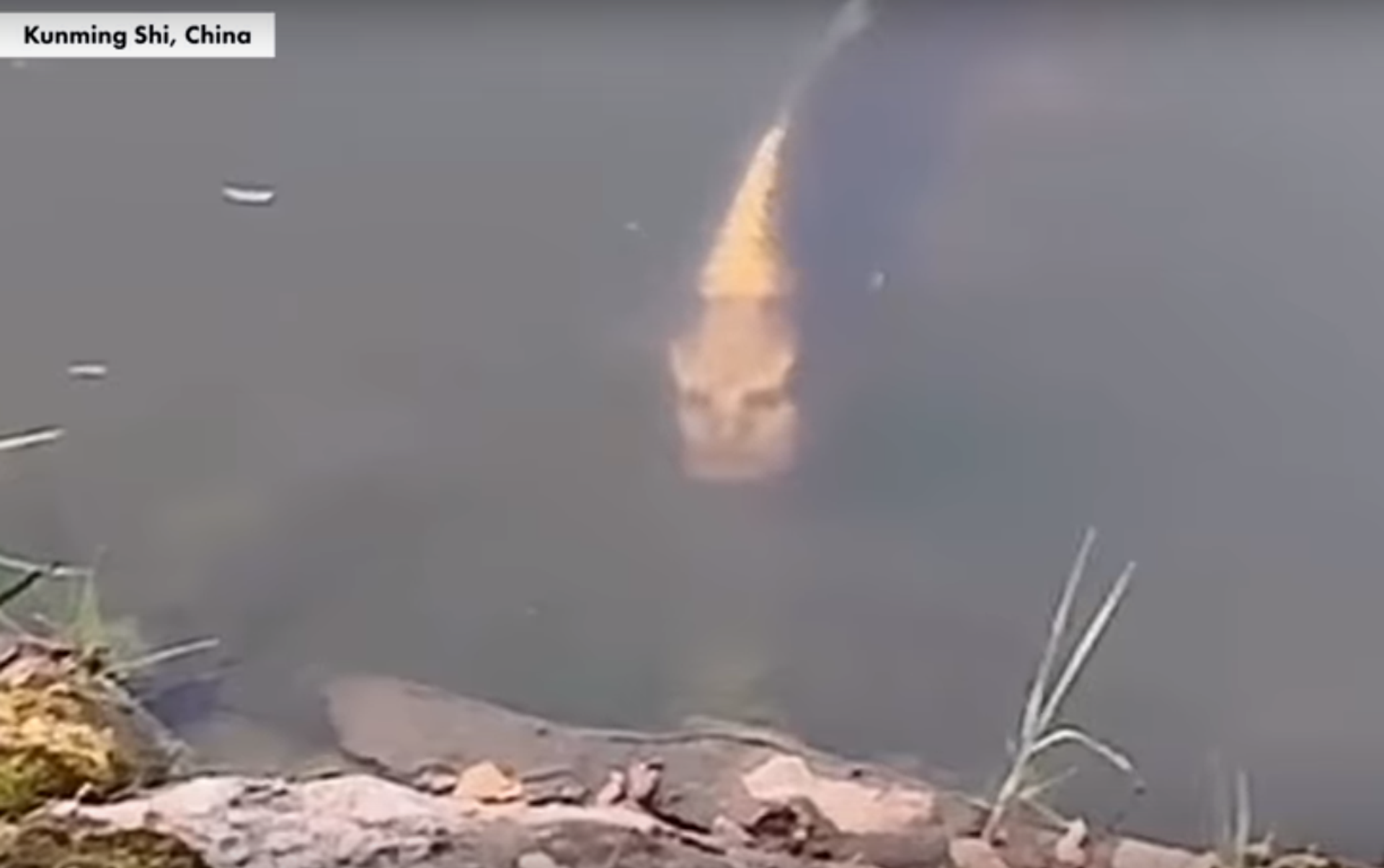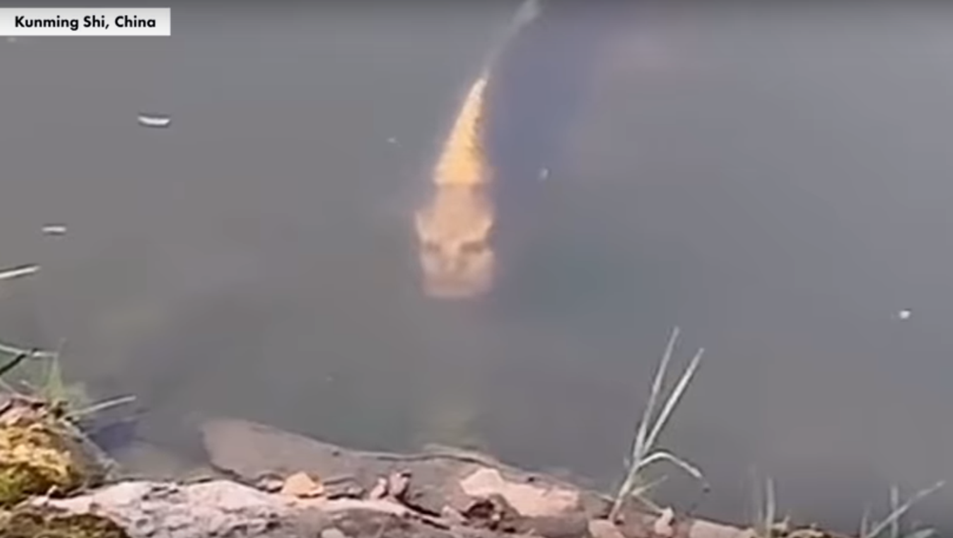 تم العثور على سمكة غريبة ذات "وجه يشبه الإنسان" تسبح في بركة في الصين.