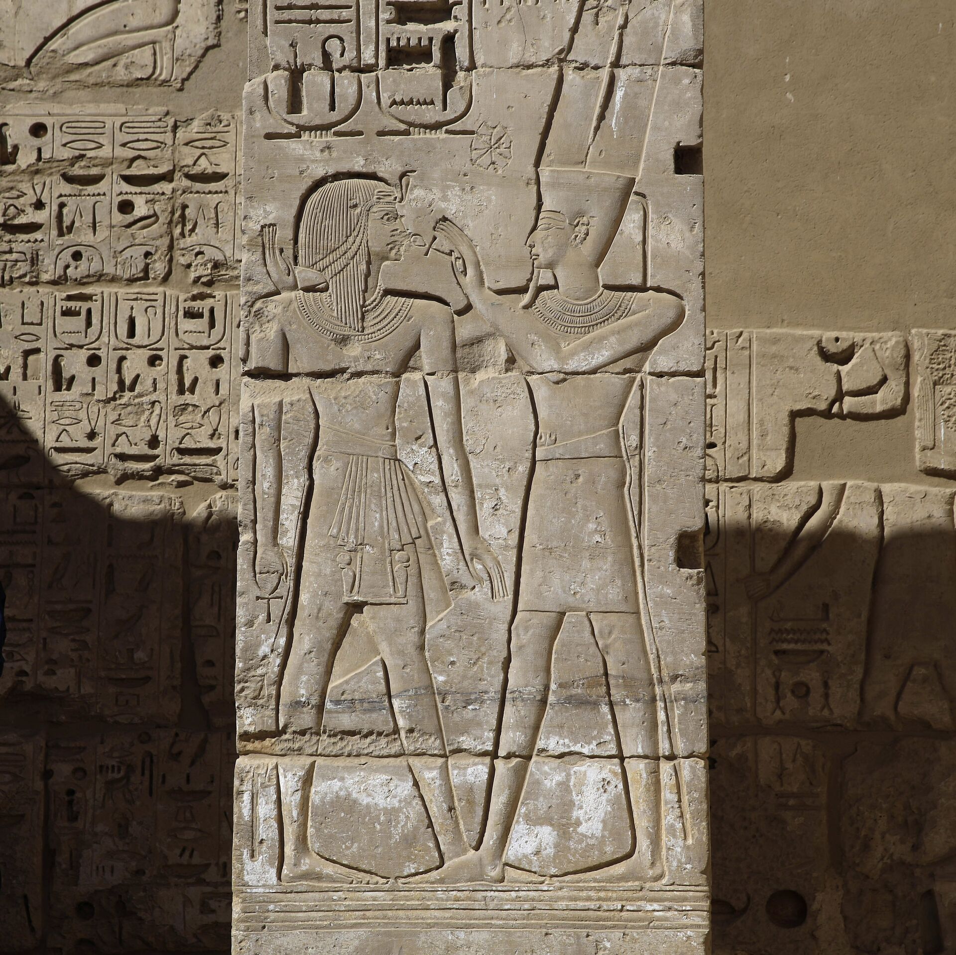 سائح يلتقط صورة لنقوش على معبد رمسيس الثالث في الأقصر - سبوتنيك عربي